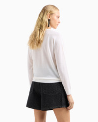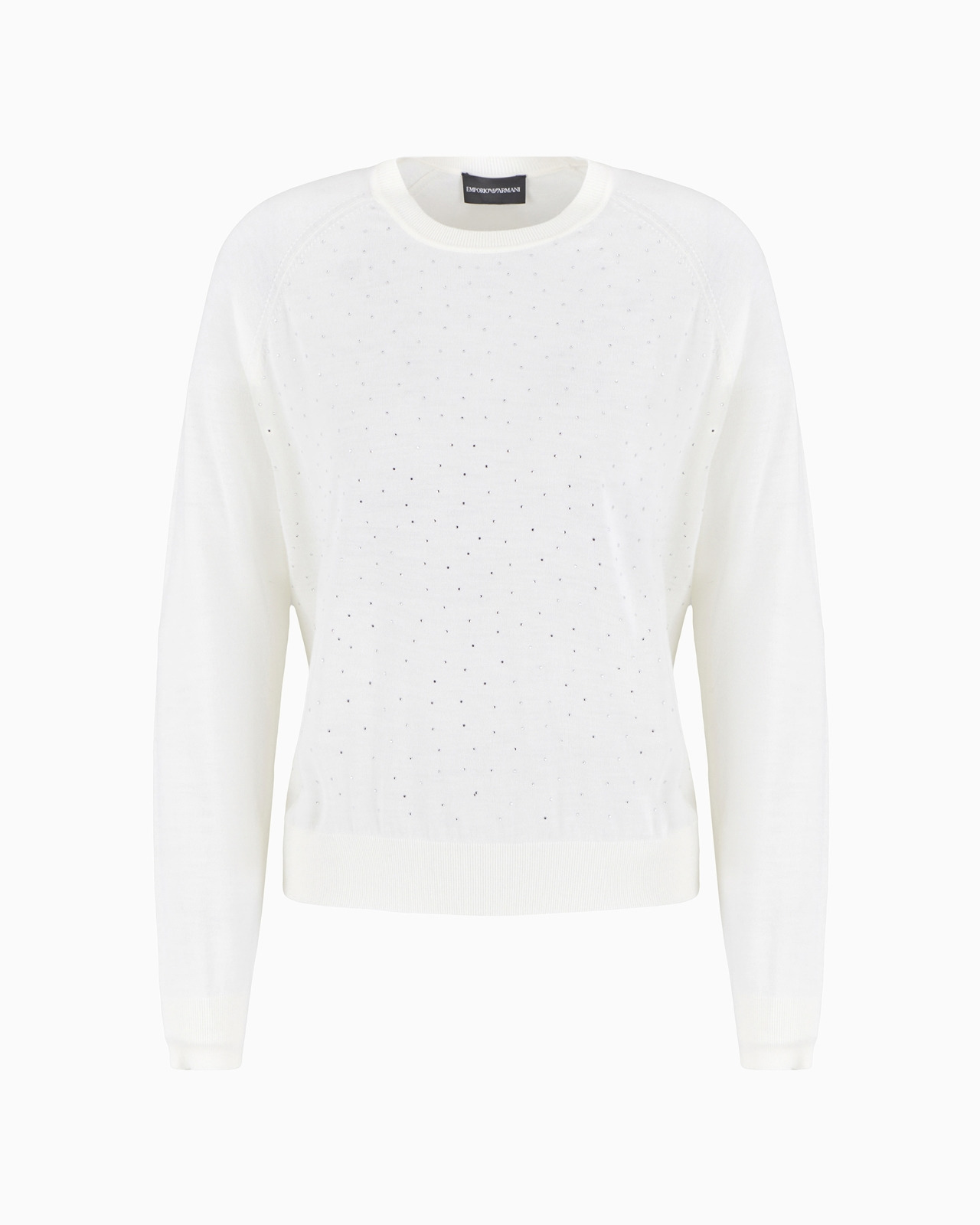 Plain-knit wool crew-neck jumper. The applied and heat-sealed micro-rhinestones on the front of the piece create a myriad of highlights. Product Code: 6D2MW12M15Z1F128 Details Composition 100% Virgin Wool Plain knit Crew neck Heat-sealed micro-rhinestones Long sleeves Ribbed trim Fitting The model is 178 cm tall and is wearing size 40/S (Italian Size)