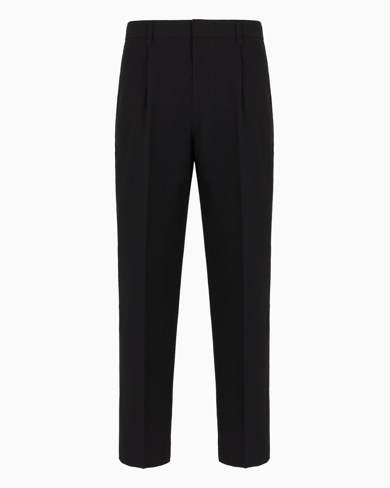 Trousers with the classic chino cut made of technical seersucker, one of Armani’s favourite textures. The ultra-lightweight fabric gives the entire piece a dynamic, crinkly feel. Product Code: 6D1PH91NSCZ10999 Details Composition 90% Polyamide 10% Elastane Seersucker Chinos Belt loops and pleats at the waist Zip, hook and button closure Welt pockets Buttoned back welt pockets Fitting The model is 188 cm tall and is wearing size 48/M (Italian Size)