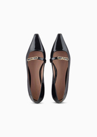 Pointed-toe ballerinas in patent leather with an eagle plate