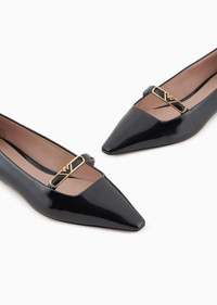 Pointed-toe ballerinas made of patent leather with an eagle logo on a fixed strap. A selection of functional, versatile footwear made distinctive by the metal logo with the iconic eagle. Product Code: X3D295XF161100002 Details Composition 100% Bovine leather Patent leather Toe Fixed strap Metal logo plate Leather sole Made in Italy