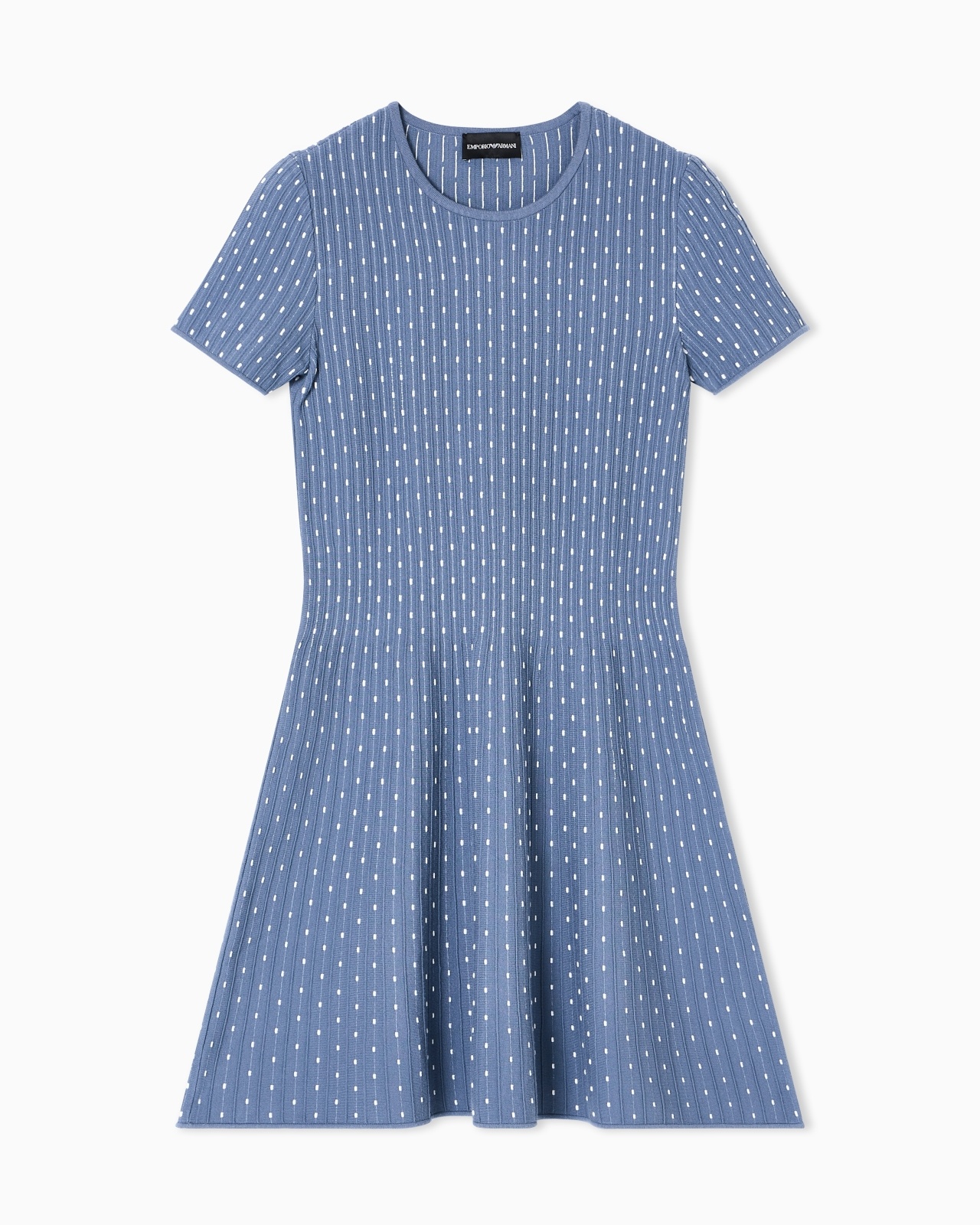 POLKA-DOT JACQUARD VISCOSE PLAIN-KNIT SHORT DRESS
