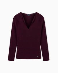 Long-sleeved V-neck jumper made from a virgin wool blend with a brushed knit. The style is part of this season’s new Polygon capsule collection, where vertical lines and geometric cut-outs capture the essence of a modern, elegant design. An offering that exudes post-modernist vibes, creating a perfect balance between functionality and aesthetic harmony: structured and refined creations are developed in melange grey tones that go hand in hand with the warmest undertones of burgundy. Brushed weave V neck Long sleeves Made in Italy Product Code: EW002674AF20186UA322
