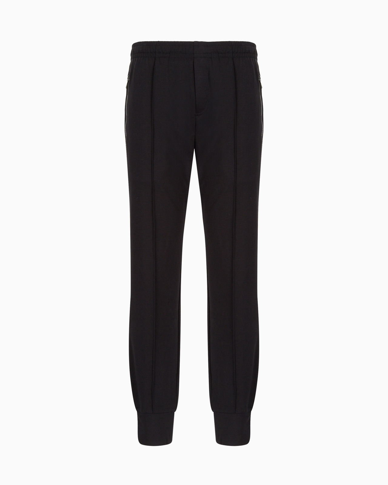 Men’s joggers crafted from a Ponte-di-Roma knit — a weave that is very pleasant to the touch and has the structure and feel of fabric, but with the comfort of jersey. This item belongs to the Essentials clothing selection, the Emporio Armani capsule collection that is an evergreen statement of style: an ongoing collection with clean, well-designed shapes for a wardrobe that meets the demands of any season. These “essential”, versatile pieces are a must-have for the male wardrobe. Ponte-di-Roma jersey Elasticated waist Inner drawstring Side pockets with zip Back welt pocket Back eagle patch Product Code: 8N1P721JBTZ0999