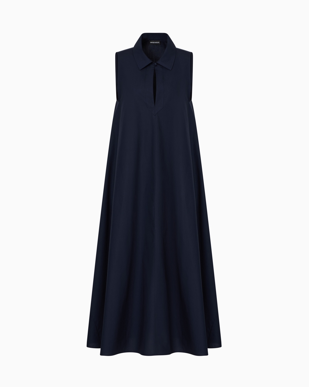 Sleeveless long dress with a classic collar and slash opening with a button. Made from crisp pure cotton poplin that adds a summery touch to every look, while the minimalist design asserts its modern attitude. The style has a slight flare that creates natural pleats on the skirt and features practical side pockets. <br>Asian Fit. Length: 130 cm Poplin Classic collar Slash opening with button Sleeveless Concealed side pockets Product Code: EW002356AF10010UB115
