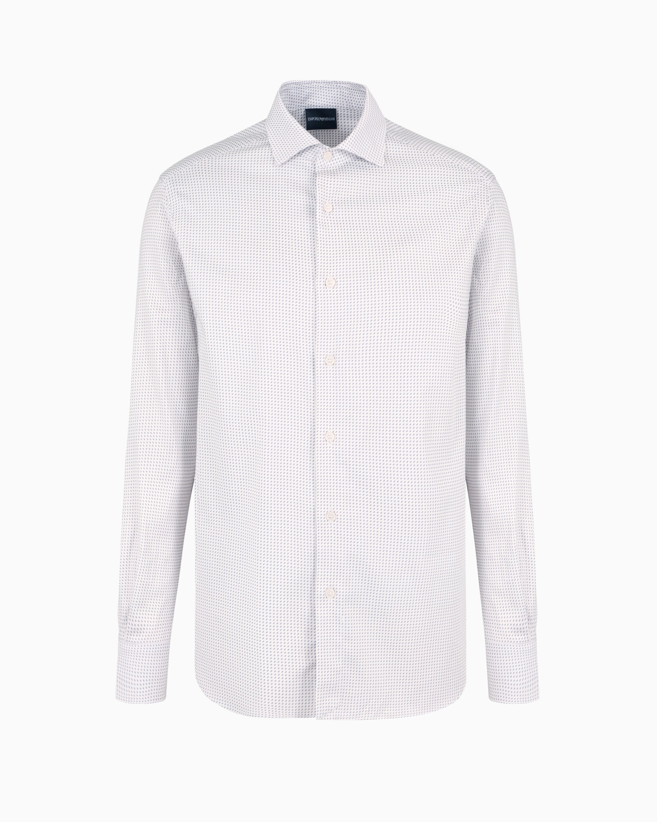 Classic-collar shirt made of stretch-cotton fabric with a dense, exclusive all-over printed decorative pattern. A style that completes seasonal looks with a fresh, modern twist. Product Code: 6D1C861K6BZ1F131 Details Composition 97% Cotton 3% Elastane Stretch cotton All-over print Classic collar Front buttoning Long sleeves Buttoned rounded cuffs Back yoke Fitting The model is 188 cm tall and is wearing size 40