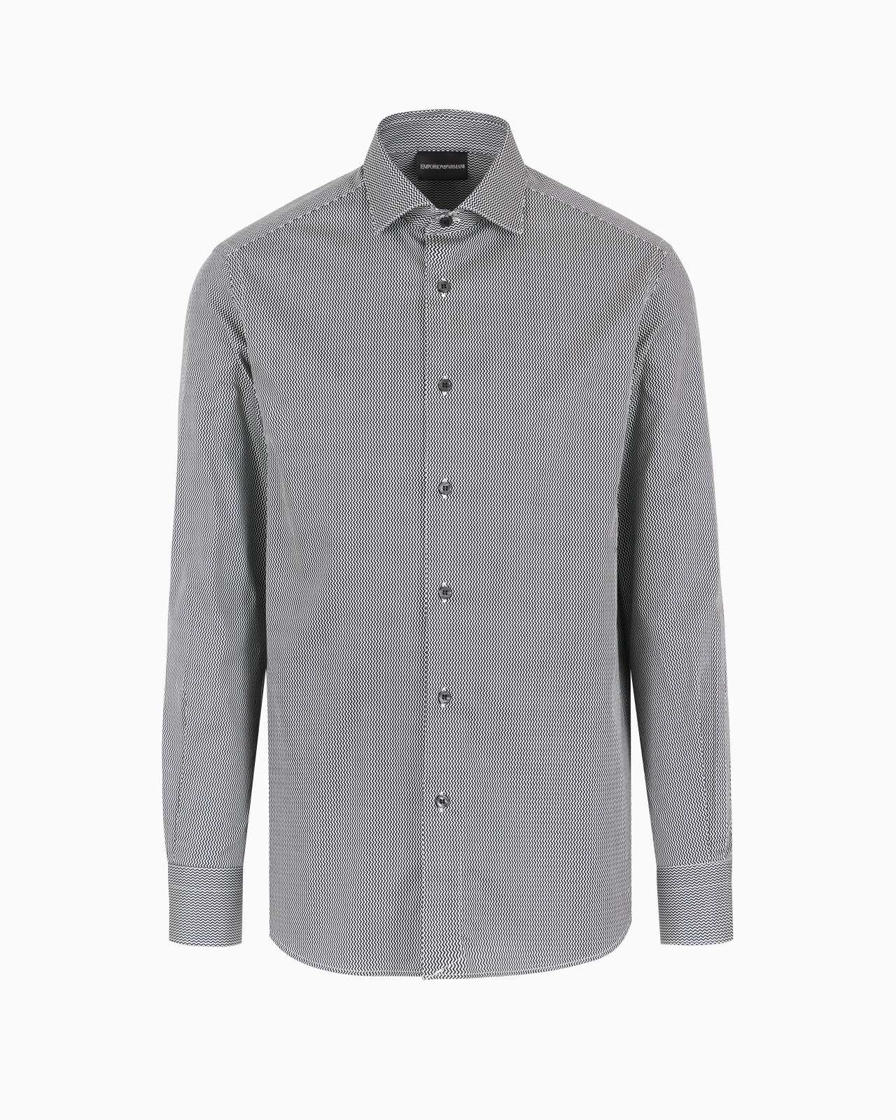 Classic-collar shirt made of stretch-cotton fabric with a dense, exclusive all-over printed decorative pattern. A style that completes seasonal looks with a fresh, modern twist. Product Code: 6D1C861K6BZ1F132 Details Composition 97% Cotton 3% Elastane Stretch cotton All-over print Classic collar Front buttoning Long sleeves Buttoned rounded cuffs Back yoke Fitting The model is 188 cm tall and is wearing size 40