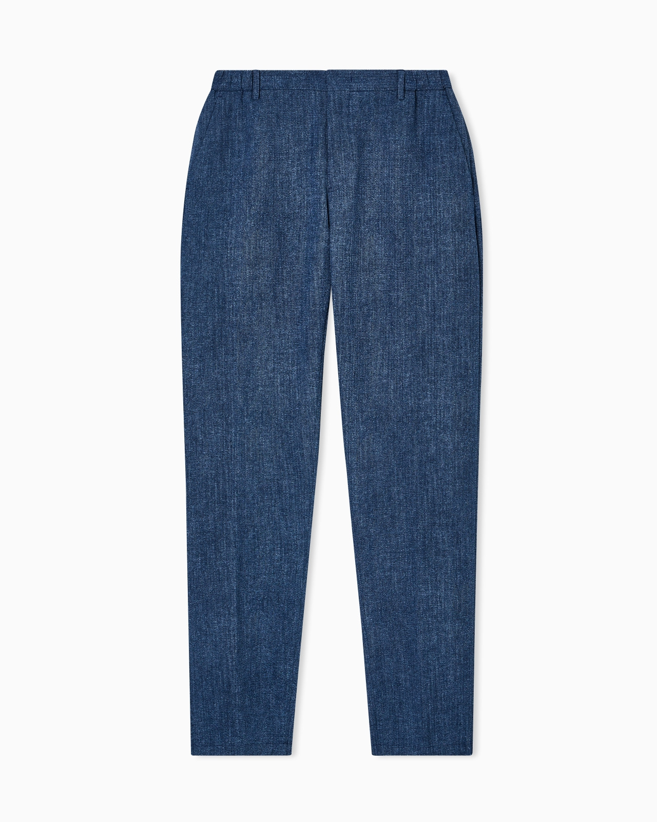 Trousers made of featherlight nylon with a seersucker finish; one of Armani’s favourite textures that gives the entire style a dynamic, crinkly feel. The dense all-over print distinguishes the garment and adds a unique melange look to the texture. Ankle cuffs: 19 cm Seersucker All-over print Waist with belt loops Closure with zip, hook and back button Side pockets Buttoned back welt pockets Product Code: EM001761TE16796PB013