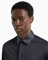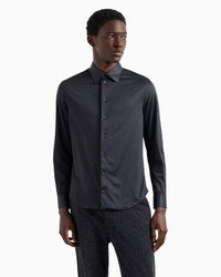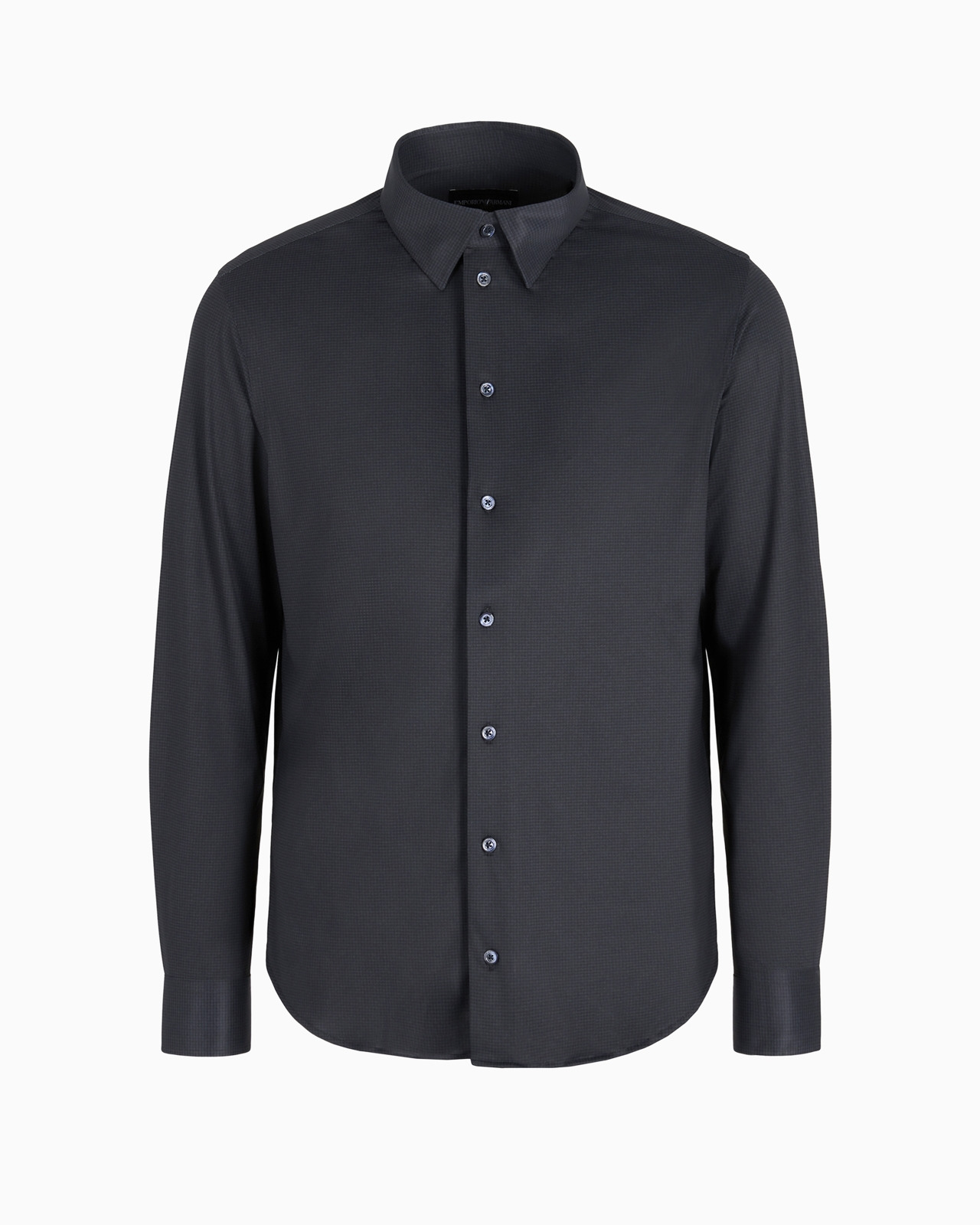 Classic-collar shirt made from stretch fabric featuring an all-over micro print. Product Code: EM000099TE113161U8113 Details Composition 91% Polyester 9% Elastane Stretch fabric All-over print Classic collar Front buttoning Long sleeves Rounded cuffs with button Back yoke Fitting The model is 188 cm tall and is wearing size 40