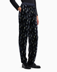 Trousers with a elasticated waist in satin, made of velvet with an all-over print. A key piece distinguished by its sophistication and elegance. Printed velvet Satin elasticated waist Side inseam pockets Elasticated hem Unlined garment Product Code: EW002652TE17011PB011