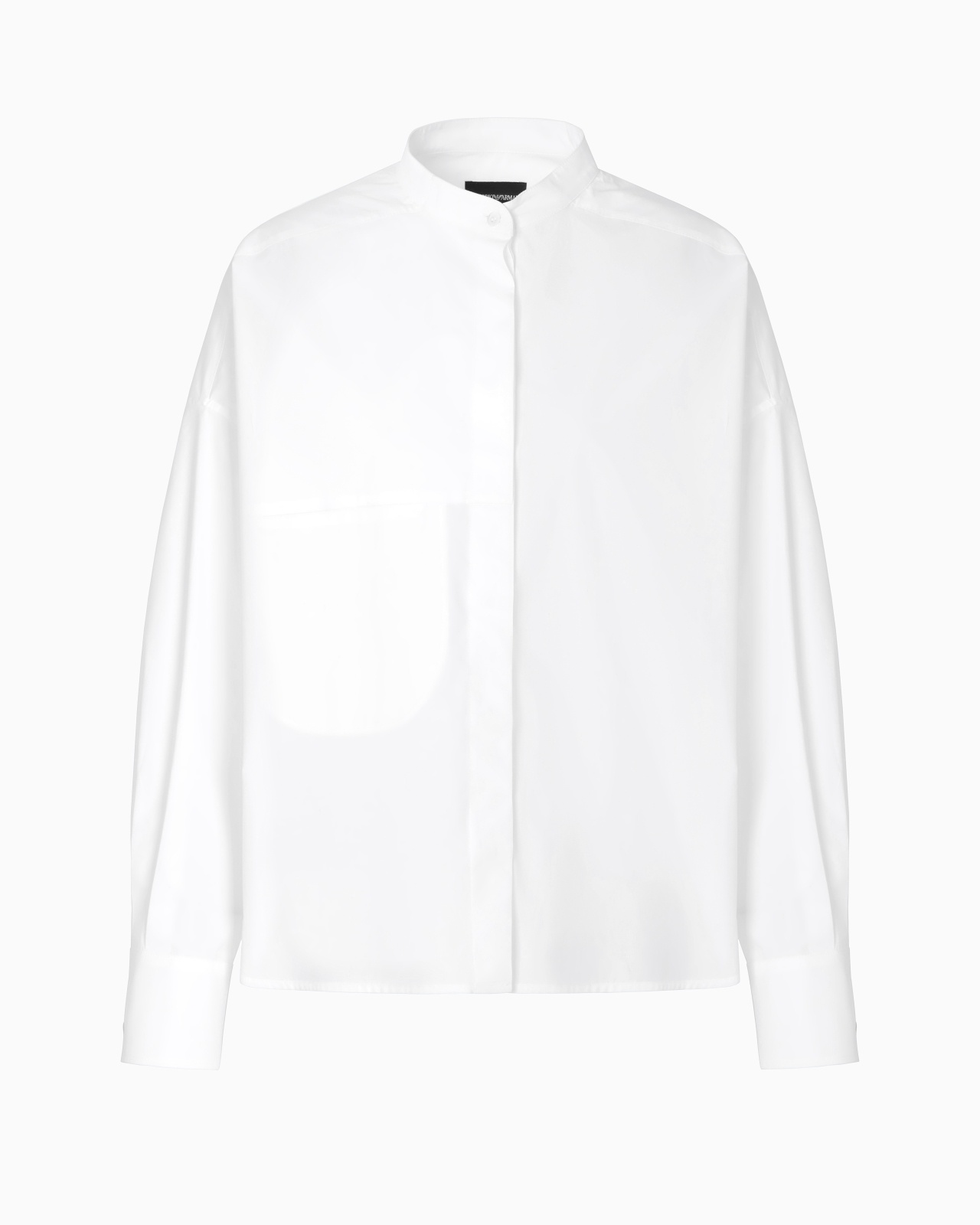 Pure cotton shirt with an iconic guru collar with a button and concealed closure. The style features a welt pocket on the chest and a godet pleat on the back that emphasises the volumes of the piece, adding character as soon as you wear it. Cotton Guru collar Concealed buttoning Long sleeves Buttoned cuffs Breast welt pocket Godet pleat at back Product Code: EW000772AF10010U0002