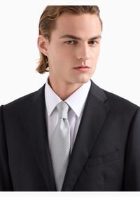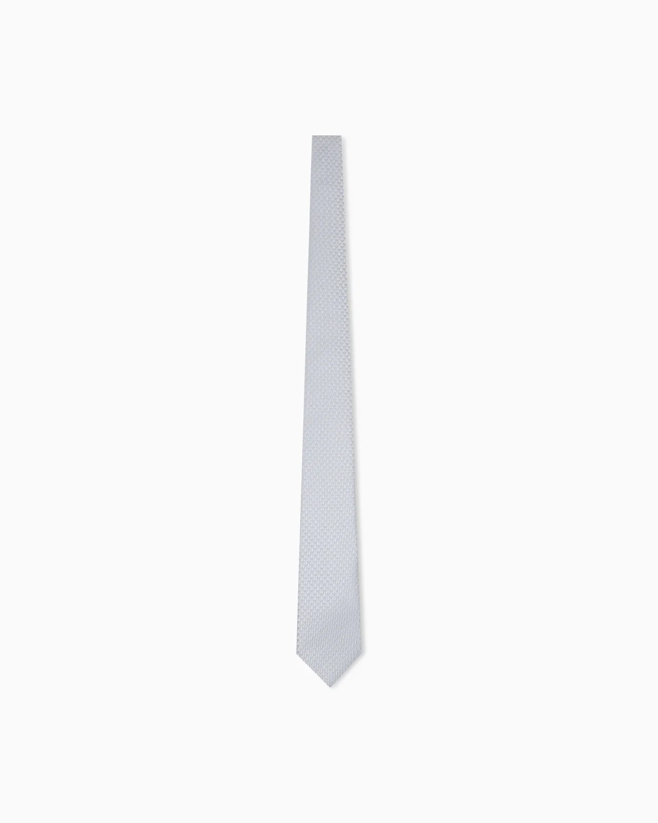 Pure silk tie with jacquard all-over eagle motif. Luxurious silk blends with an all-over, iconic eagle jacquard monogram. Men’s tie with sophisticated allure, perfect for special occasions. Product Code: 340075CC113100017 Details Composition 100% Silk Measurements: 146 x 7.5 cm Silk Jacquard Made in Italy