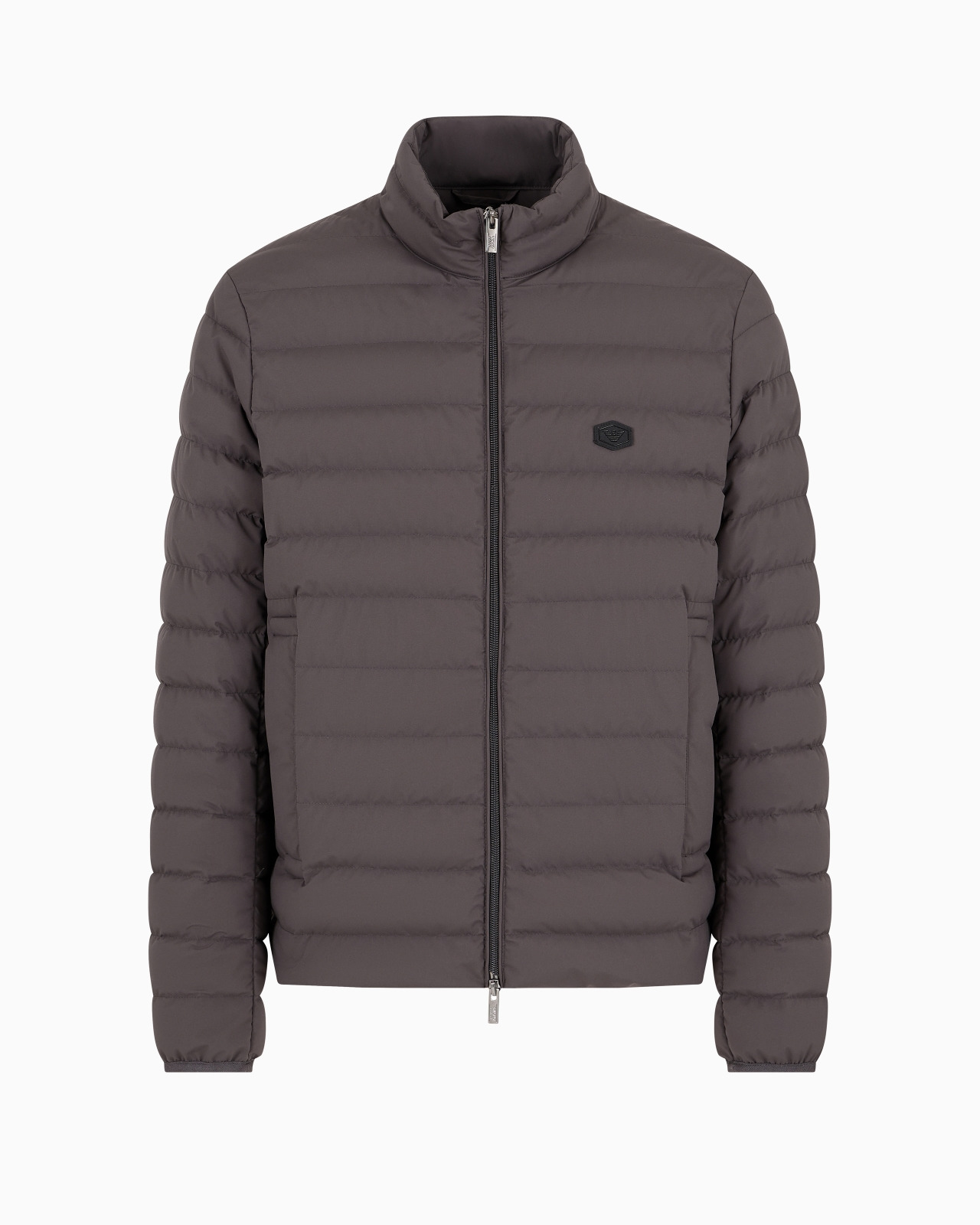 Quilted nylon full-zip down jacket with eagle logo patch