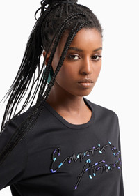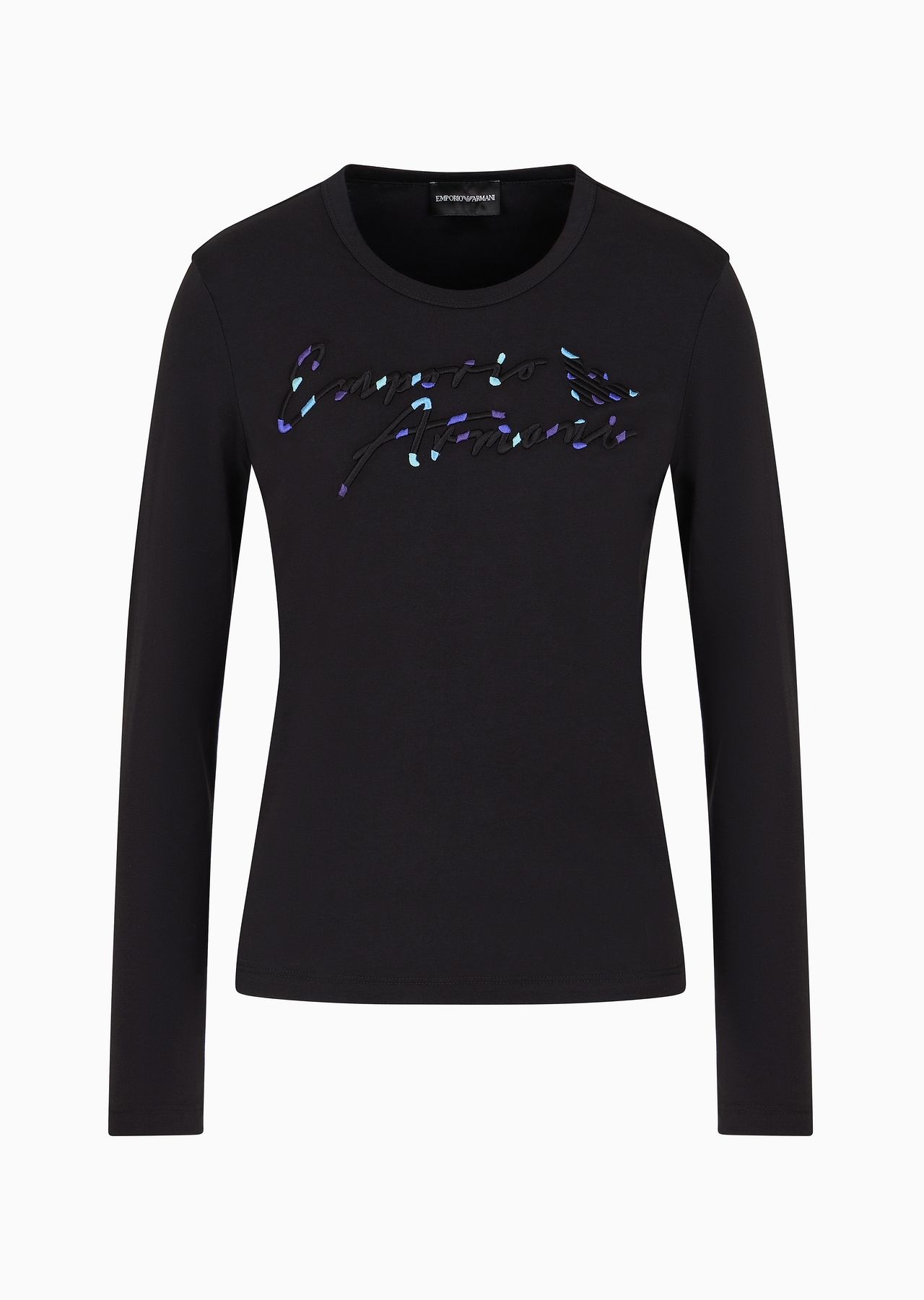 Jumper made from luxury Supima jersey: a high-quality Pima cotton offering incredible softness, durability and sheen. This style is embellished with a high-relief embroidery that depicts the logo and the iconic eagle with contrasting spots. By choosing this product you are helping to support the Better Cotton Initiative: The BCI uses a tracking system that allows Better Cotton to replace or be blended with conventional cotton. Product Code: 6D2T7R2JFNZ10999 Details Composition 100% Cotton Supima jersey Crew neck Long sleeves Logo embroidery Fitting The model is 178 cm tall and is wearing size 40/S (Italian Size)