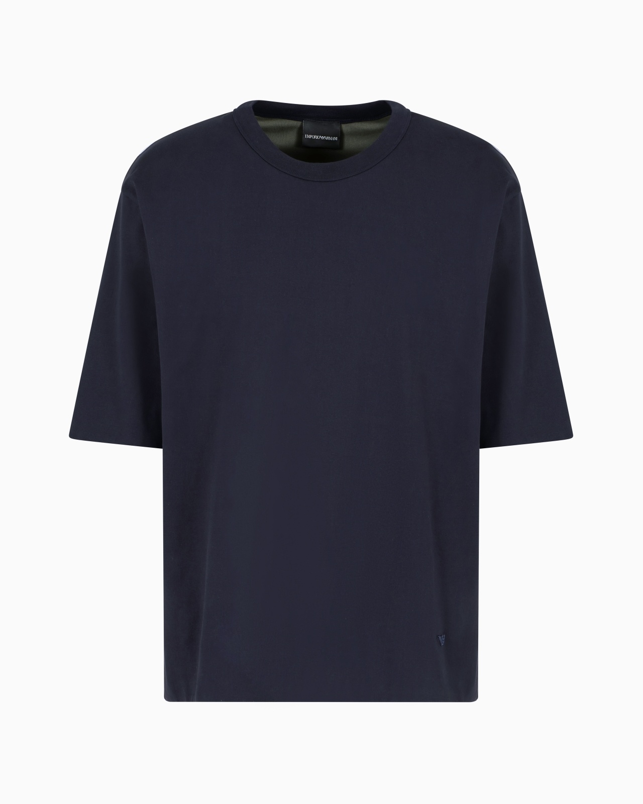 Pure cotton-jersey, crew-neck T-shirt. The piece is reversible, and shows contrasting colours according to the side on which it is worn. Jersey Reversible Crew neck Short sleeves Micro-eagle embroidered at the left hem Product Code: EM001061AF13669UB118