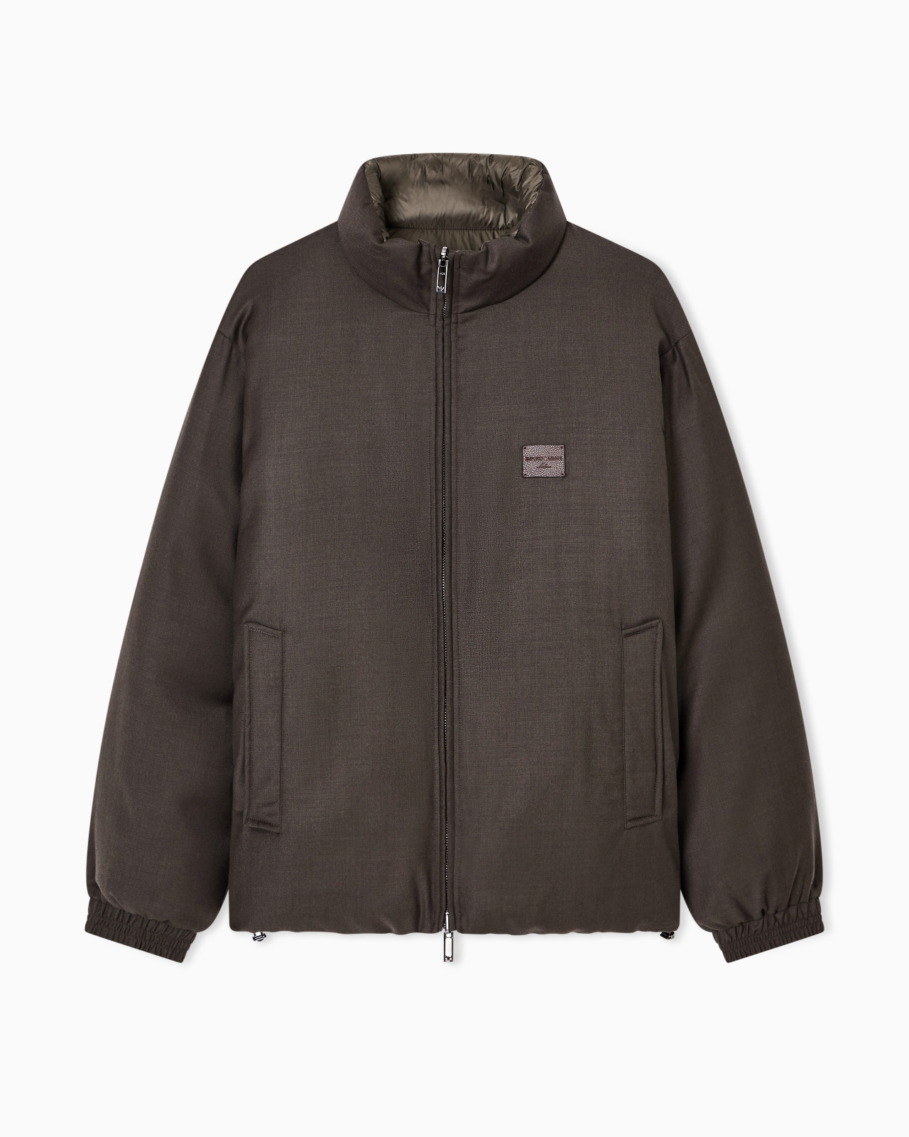 This down jacket is reversible: on one side the sophisticated taste of wool-blend twill fabric, a texture featuring a characteristic diagonal weave, on the other side the casual appeal of nylon with horizontal quilting that enhances the cosy feel of the genuine down padding. The perfect combination of practicality and style, where functionality and trend come together to give a touch of fashion to your idea of comfort. Reversible Wool-blend twill on the outside Quilted nylon on the inside Full-zip closure Long sleeves Stretch cuffs Open side pockets on the outside Side zipped flap pockets on the inside Warm plush fabric pocket lining Drawstring hem Product Code: EM003275AF18078U8120