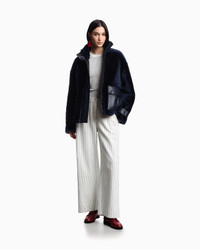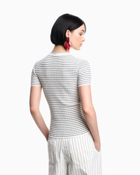 Crew-neck T-shirt made from a viscose blend in a rib-knit. The horizontal striped pattern creates a check effect that distinguishes the style. Rib knit Striped design Crew neck Short sleeves Product Code: EW001262AF18758M0002