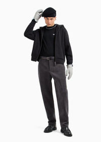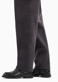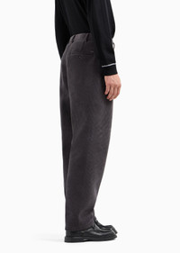 Classic, versatile trousers. The smooth velour fabric with vertical ribbing envelops the leg with a wide silhouette to give a comfortable, sophisticated look to any outfit. Product Code: 6D1PN71JOWZ10842 Details Composition 60% Cotton 40% Polyester Ribbed velour Waist with belt loops Zip, hook and button closure Side pockets Buttoned double-welt pockets Fitting The model is 188 cm tall and is wearing size 48/M (Italian Size)