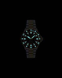 Sea Explorer is a 42.5mm automatic dive watch featuring sapphire crystal and Super-LumiNova® on hands, indexes and bezel markings for optimal visibility in dark underwater conditions. As indicated by the "Diver's" marking on the dial, this watch is ISO 6425 certified, making it expertly equipped for deep-sea diving up to 200 meters. This iteration boasts a glossy black enamel dial and an integrated two-tone stainless steel bracelet. Japanese movement Automatic/3 Hand Date Black 42mm Stainless Steel 2-Tone 2-Tone Stainless Steel 20 ATM Product Code: AR60089NLPNLC