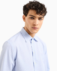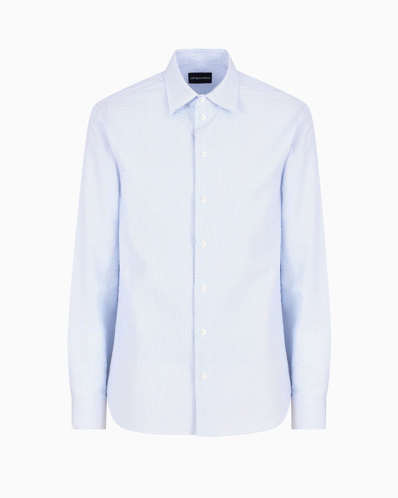 Pure cotton shirt with classic collar. The intricate micro-weave generates a seersucker-effect micro-pattern that gives the entire style a dynamic crinkled appearance. Seersucker weave Classic collar Long sleeves Rounded cuffs with buttons Back yoke Product Code: EM000099TE14192F9025