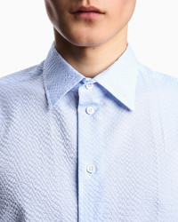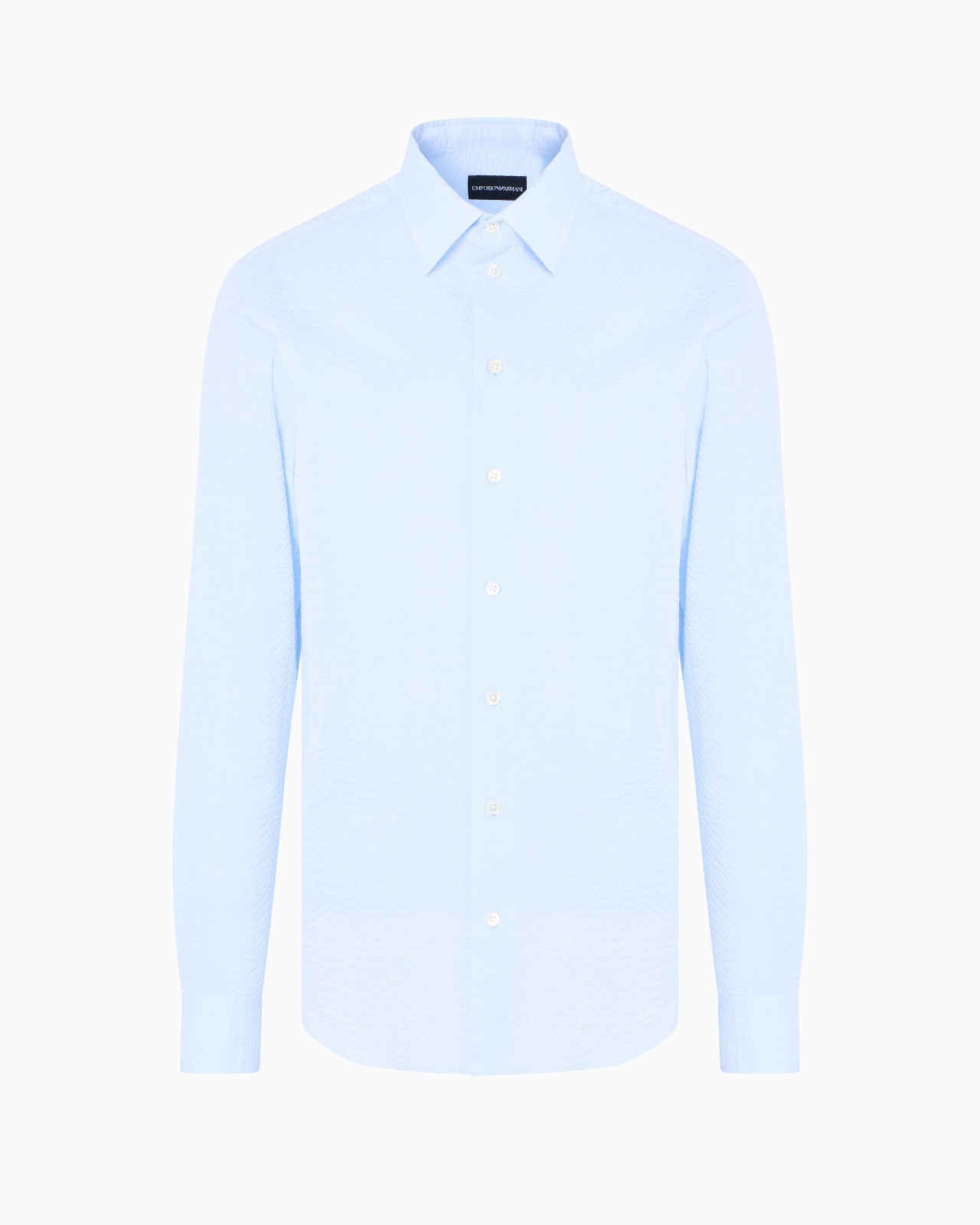Pure cotton shirt with classic collar. The intricate micro-weave generates a seersucker-effect micro-pattern that gives the entire style a dynamic crinkled appearance. Seersucker weave Classic collar Long sleeves Rounded cuffs with buttons Back yoke Product Code: EM000099TE14192U9333