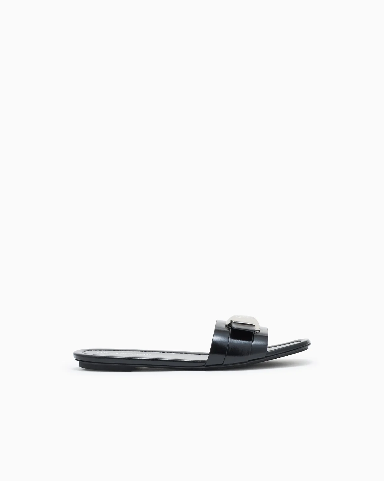 Sandals made of luxury shiny polished cowhide. This line stands out for its modern design, featuring clean lines, essential shapes and minimalist silhouettes. The styles are enhanced by a characteristic wavy metal detail with a logo, presented in an oversized version on the straps of the sandals or in a more minimalist form as a ring on the straps of the slingbacks. A subtle yet striking element that adds sophistication and character, developed in perfect harmony with the women's leather goods collection. Heel height: 1 cm Leather Shiny polished finish Banded upper Metal logo application Rounded toe Made in Italy Product Code: EW004446AF21961UC001