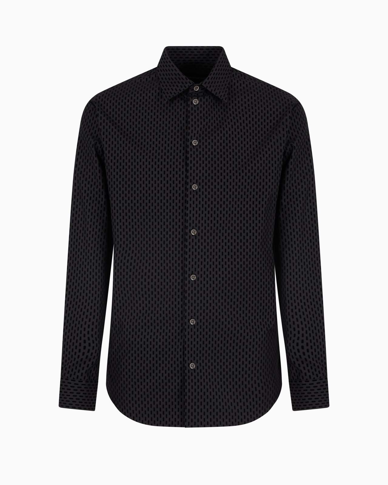 Pure cotton shirt featuring an exclusive all-over print, produced through a flocking technique that creates a unique, embossed surface that is velvety to the touch. The tonal dense pattern creates a sophisticated all-over motif. All-over flock print Embossed pattern Classic collar Front buttoning Long sleeves Angled cuffs Back yoke Product Code: EM000099TE13590FC004