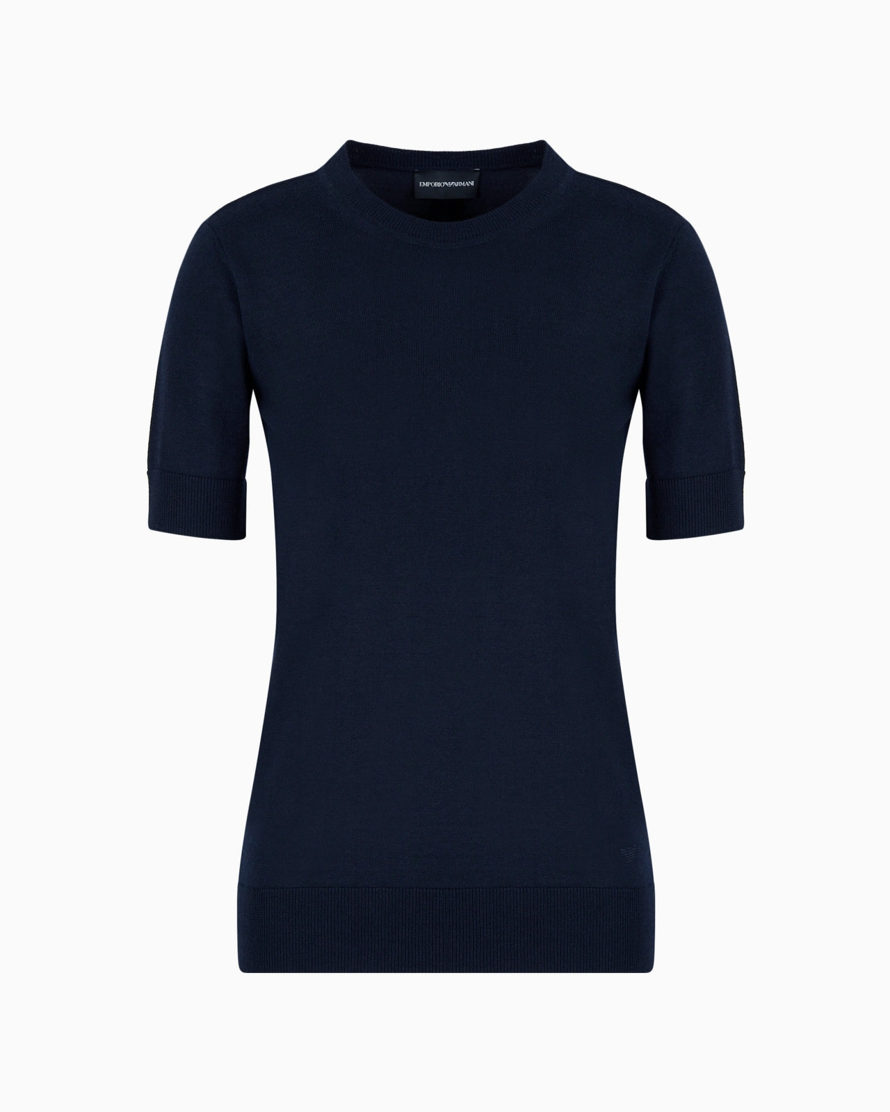 This pure virgin wool, short-sleeved jumper can be worn anywhere in a wide array of outfits. Soft, plain-knit weave with ribbed trim. The piece belongs to the Essentials selection, the Emporio Armani capsule collection that makes a statement of enduring style: both elegant and practical, it works for numerous combinations on a wide array of occasions. The colour palette includes the brand’s characteristic neutral shades, combined with a minimalist design to create a series of key pieces for the female wardrobe. Product Code: 8N2MZS2M9DZ10926 Details Composition 100% Virgin Wool Fineness: 14 Plain knit Crew neck Short sleeves Ribbed trim Colour-matched micro eagle embroidered on the left hem Fitting The model is 178 cm tall and is wearing size 40/S (Italian Size)