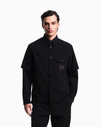 Oversized short-sleeved shirt with front patch pocket with logo patch. The item is made of a nylon spandex with a light, textured appearance, in a modern design that blends with the exclusive seersucker fabric, one of the textures favoured by Armani and that gives the entire piece a dynamic, crisp feel. Oversized fit Nylon Seersucker Classic collar Front buttoning Short sleeves Patch pocket with flap Logo patch Product Code: EM003410AF18781UC001