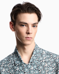 Short-sleeved shirt with an oversized fit, made from a linen and viscose blend. The original collection print runs across the entire item, completing it with distinction. This season’s Armani Sustainable Values (ASV) capsule collection draws inspiration from the feeling and profound, universal meaning of PEACE. The keyword that connects the entire collection is expressed in all its forms, enhancing simplicity, harmony and the eternal link between mankind and nature, offering a wardrobe composed of practical, comfortable and highly versatile daywear pieces designed to accompany us seamlessly throughout the day. Smooth, sometimes shiny surfaces merge with floral jacquard motifs and all-over prints depicting the symbol of peace. Oversized fit All-over print Classic collar Front buttoning Short sleeves Logo patch Product Code: EM001084AF13858FB065