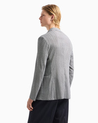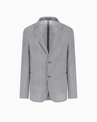 SINGLE-BREASTED BLAZER IN A CHEVRON-PRINT SEERSUCKER FABRIC