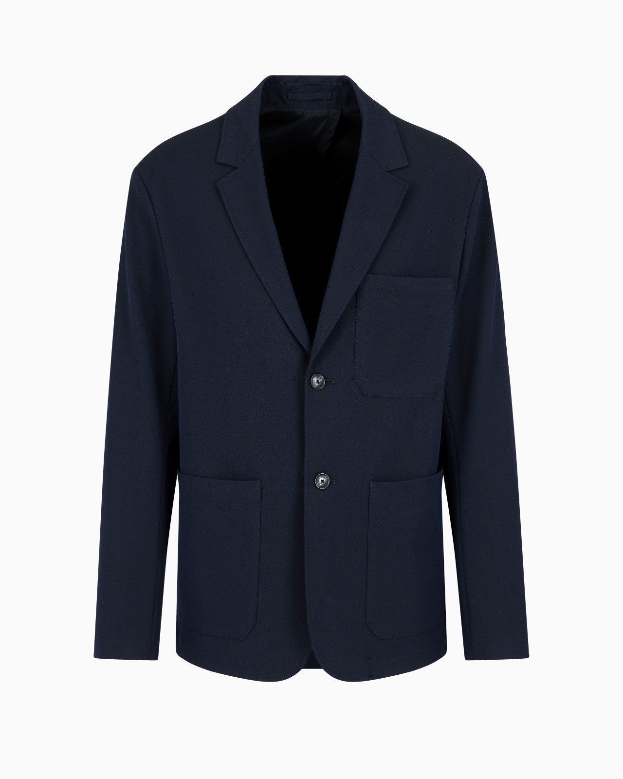 Single-breasted jacket with a lapel collar and front patch pockets. Made of a lightweight, compact fabric with a wool finish, it is an impeccable match for multiple outfits. Product Code: 6D1GA21NUUZ10920 Details Composition 68% Polyester 28% Viscose 4% Elastane Compact fabric Single-breasted Lapel collar Long sleeves Three front patch pockets Lined sleeves and semi-lined back Fitting The model is 188 cm tall and is wearing size 48/M (Italian Size)