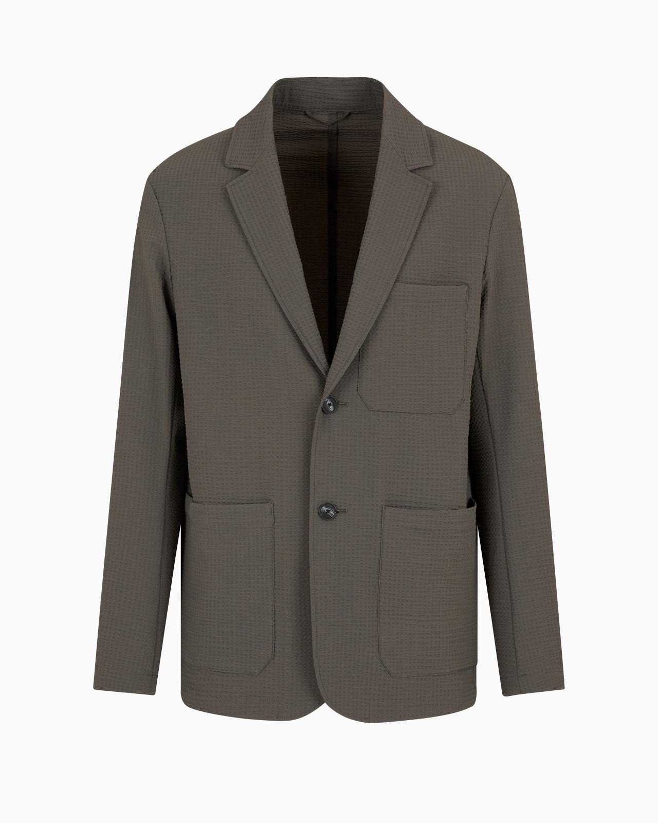 Single-breasted jacket with a lapel collar and front patch pockets. Made of technical seersucker, one of Armani’s favourite textures. The ultra-lightweight fabric gives the entire piece a dynamic, crinkly feel. Product Code: 6D1GA21NSCZ106K0 Details Composition 90% Polyamide 10% Elastane Seersucker Single-breasted Lapel collar Long sleeves Three front patch pockets Unlined garment Fitting The model is 188 cm tall and is wearing size 48/M (Italian Size)