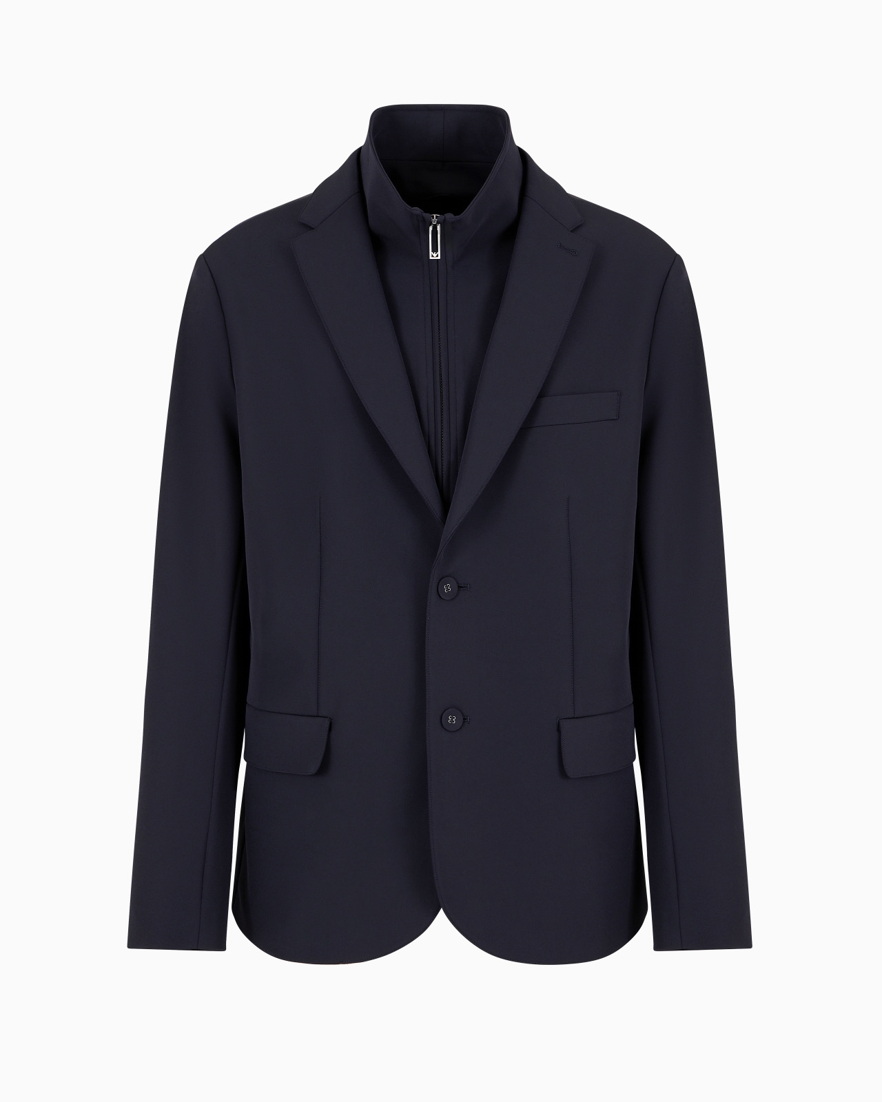 Single-breasted jacket with full-zip detachable inner panel in smooth lightweight nylon