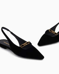 Slingback ballerinas made of velvet, with an eagle logo on the fixed strap. A selection of functional, versatile footwear made distinctive by the metal logo with the iconic eagle. Heel height: 1.5 cm Velvet Square toe Fixed strap Metal logo plate Leather sole Made in Italy Product Code: X3D301XD11700002