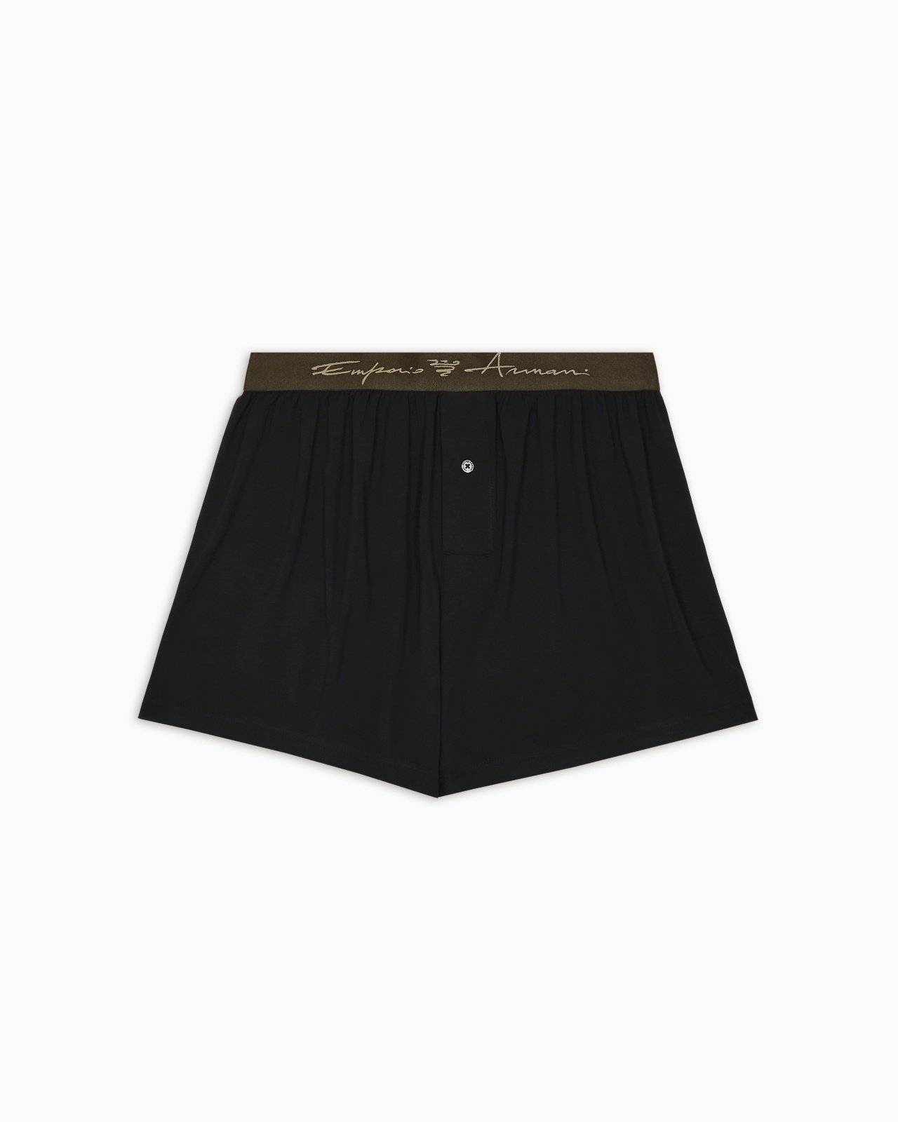 Logo elasticated-waist boxers made of soft-touch modal: a high-tech fabric that precisely follows the body’s every movement. The item comes in special logo packaging. Cosy modal Elasticated waist with logo Special logo box Product Code: EM000366AF10783UC001