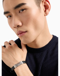 This ID bracelet features stainless steel and black leather with a push button closure. Bracelet ID Stainless Steel Silver Length: 258mm, Width: 13.5mm Product Code: EGS3075040NLPNLC