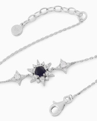 This station bracelet features sterling silver, blue glass stone, white cubic zirconia and a round lobster clasp closure. Bracelet Station Sterling Silver Silver Length: 160mm + 30mm, Width: 11mm, Height: 12.5mm Product Code: EG3601040NLPNLC