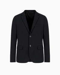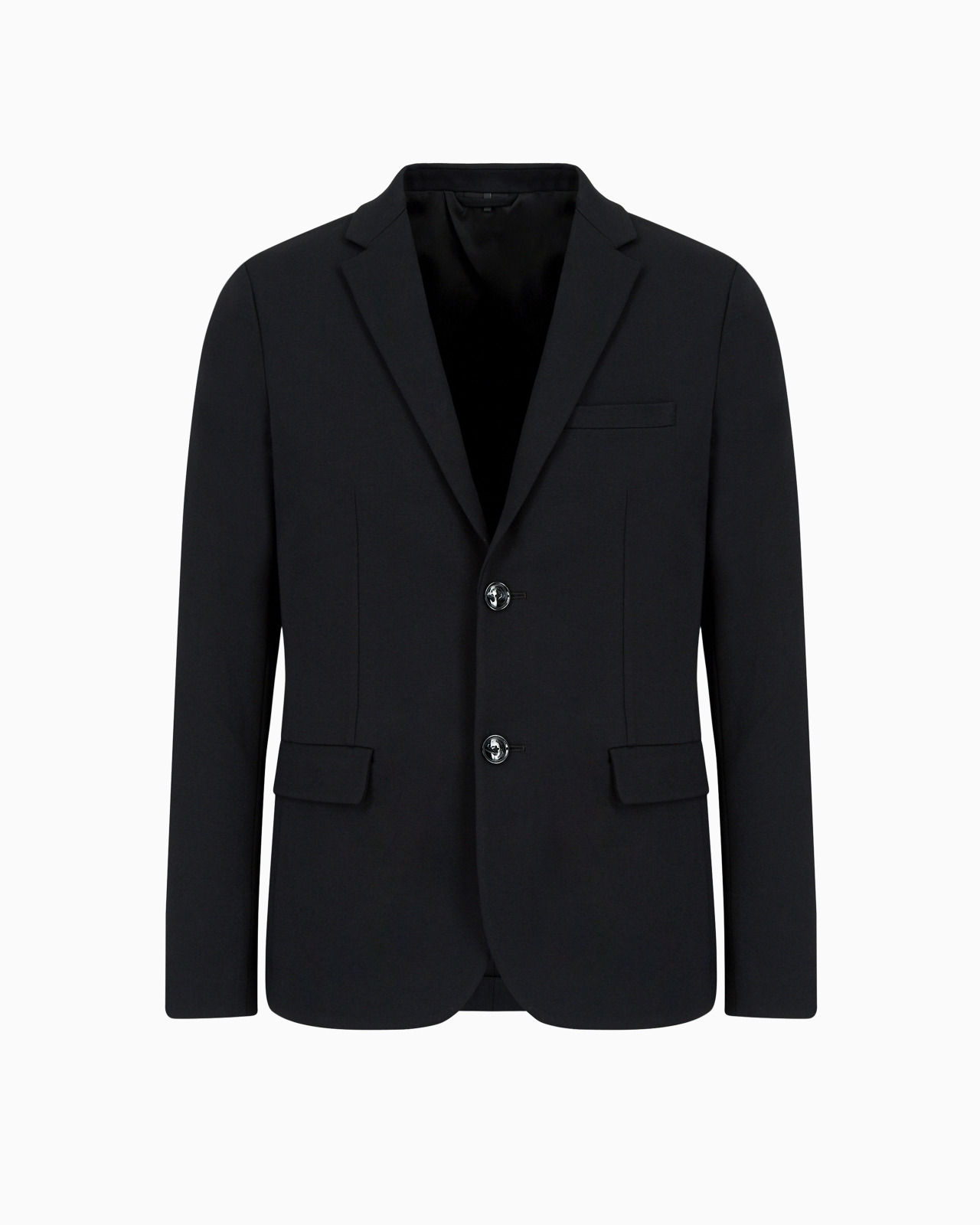 Single-breasted jacket with a classic lapel collar, side flap pockets and double back vent. This item belongs to the Essentials clothing selection, the Emporio Armani capsule collection that is an evergreen statement of style: an ongoing collection with clean, well-designed shapes for a wardrobe that meets the demands of any season. These “essential”, versatile pieces are a must-have for the male wardrobe. Product Code: 8N1G811JEZZ10999 Details Composition 63% Viscose 32% Polyamide 5% Elastane Jersey Solid color Lapel collar Single-breasted Long sleeves Three pockets Front closure 2 buttons Dual back vents Fitting The model is 188 cm tall and is wearing size 48/M (Italian Size)
