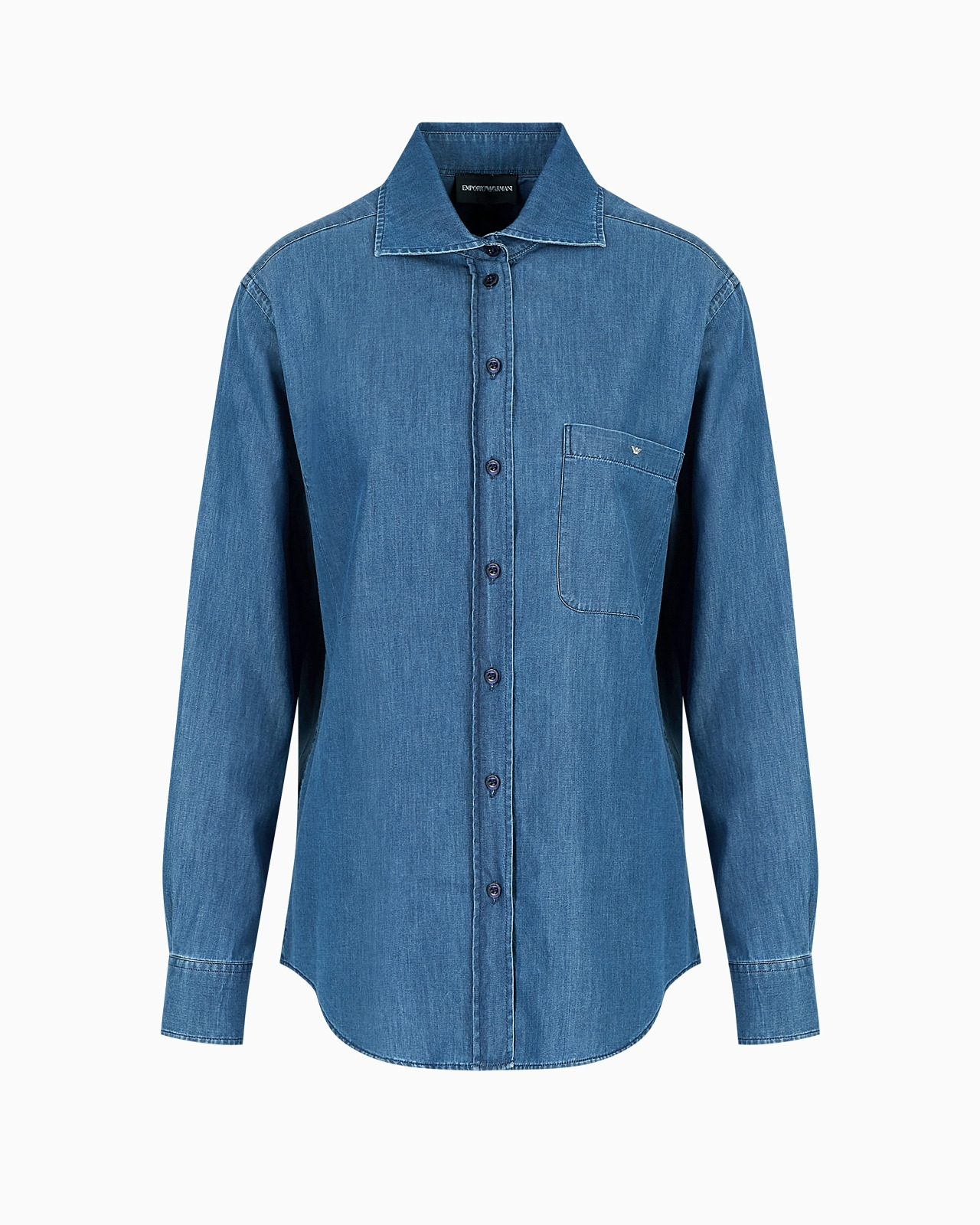 Emporio Armani takes the classic denim shirt and makes it iconic through the brand’s inimitable treatment and style: this garment is distinguished by its front button closure and patch pocket on the chest with a distinctive eagle rivet. The piece belongs to the Essentials selection, the Emporio Armani capsule collection that makes a statement of enduring style: both elegant and practical, it works for numerous combinations on a wide array of occasions. The colour palette includes the brand’s characteristic neutral shades, combined with a minimalist design to create a series of key pieces for the female wardrobe. Product Code: 8N2C792DL4Z10941 Details Composition 100% Cotton Denim Stone-washed treatment Classic collar Front button closure Patch pocket Eagle rivet Long sleeves Button cuffs Back yoke Fitting The model is 178 cm tall and is wearing size 40/S (Italian Size)