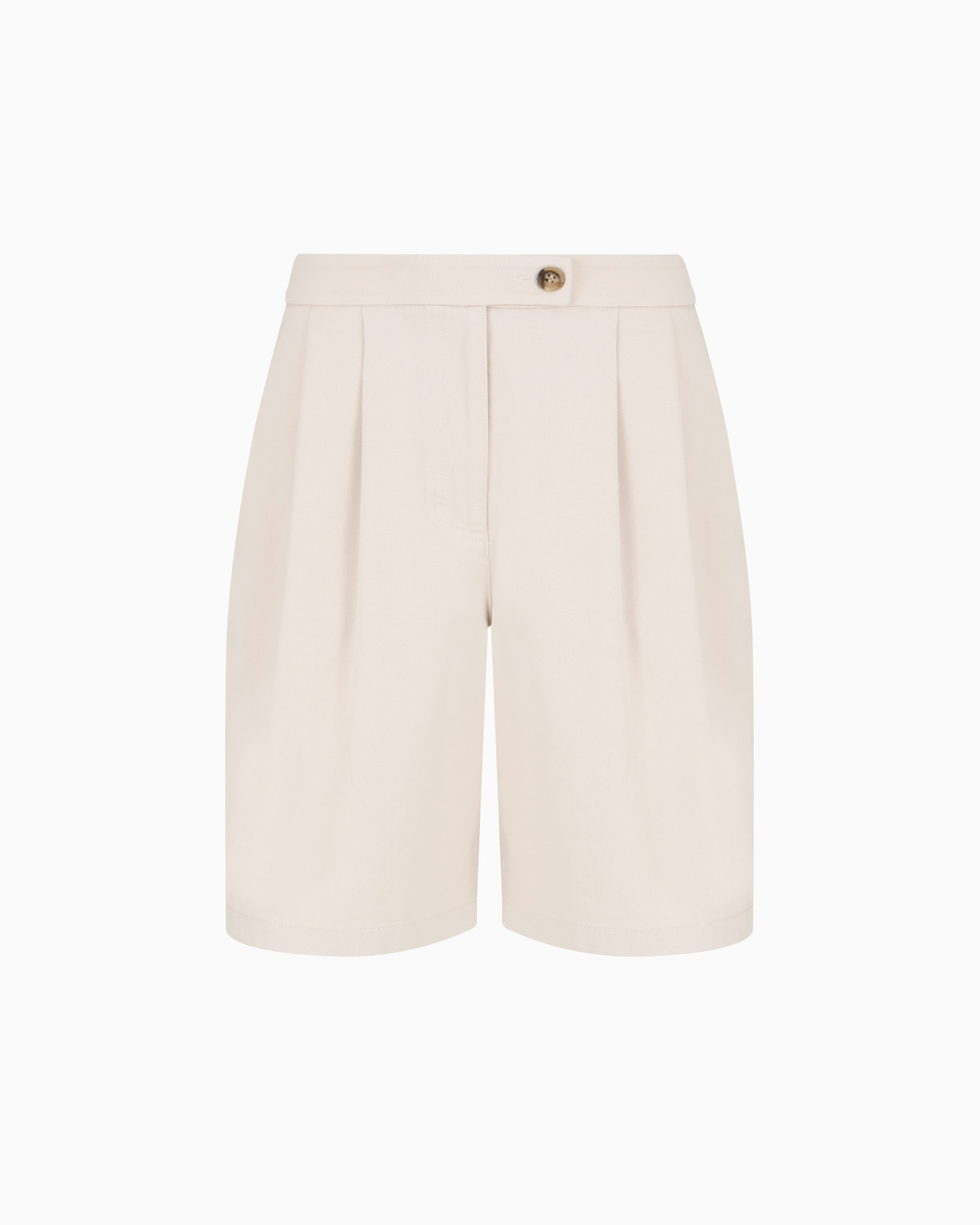 Shorts with front tucks that create deep vertical pleats. A comfortable design made from stretch cotton gabardine. Product Code: 6D2P742NB1Z10132 Details Composition 98% Cotton 2% Elastane Stretch gabardine Closure with zip, button and back button Side pockets Back patch pocket Fitting The model is 178 cm tall and is wearing size 40/S (Italian Size)