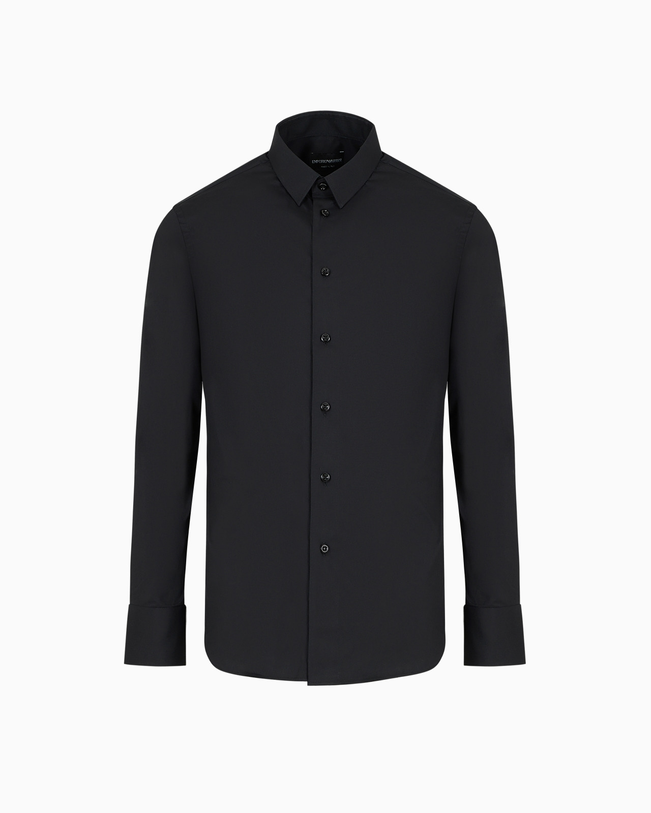 Stretch cotton poplin shirt featuring a collar with small points. The classic nature of the ultimate must-have item, returns intent on representing Emporio Armani style to its fullest. This item belongs to the Essentials clothing selection, the Emporio Armani capsule collection that is an evergreen statement of style: an ongoing collection with clean, well-designed shapes for a wardrobe that meets the demands of any season. These “essential”, versatile pieces are a must-have for the male wardrobe. Stretch poplin Classic collar Small points Front buttoning Long sleeves Buttoned rounded cuffs Back yoke Product Code: 01C35T0130C999