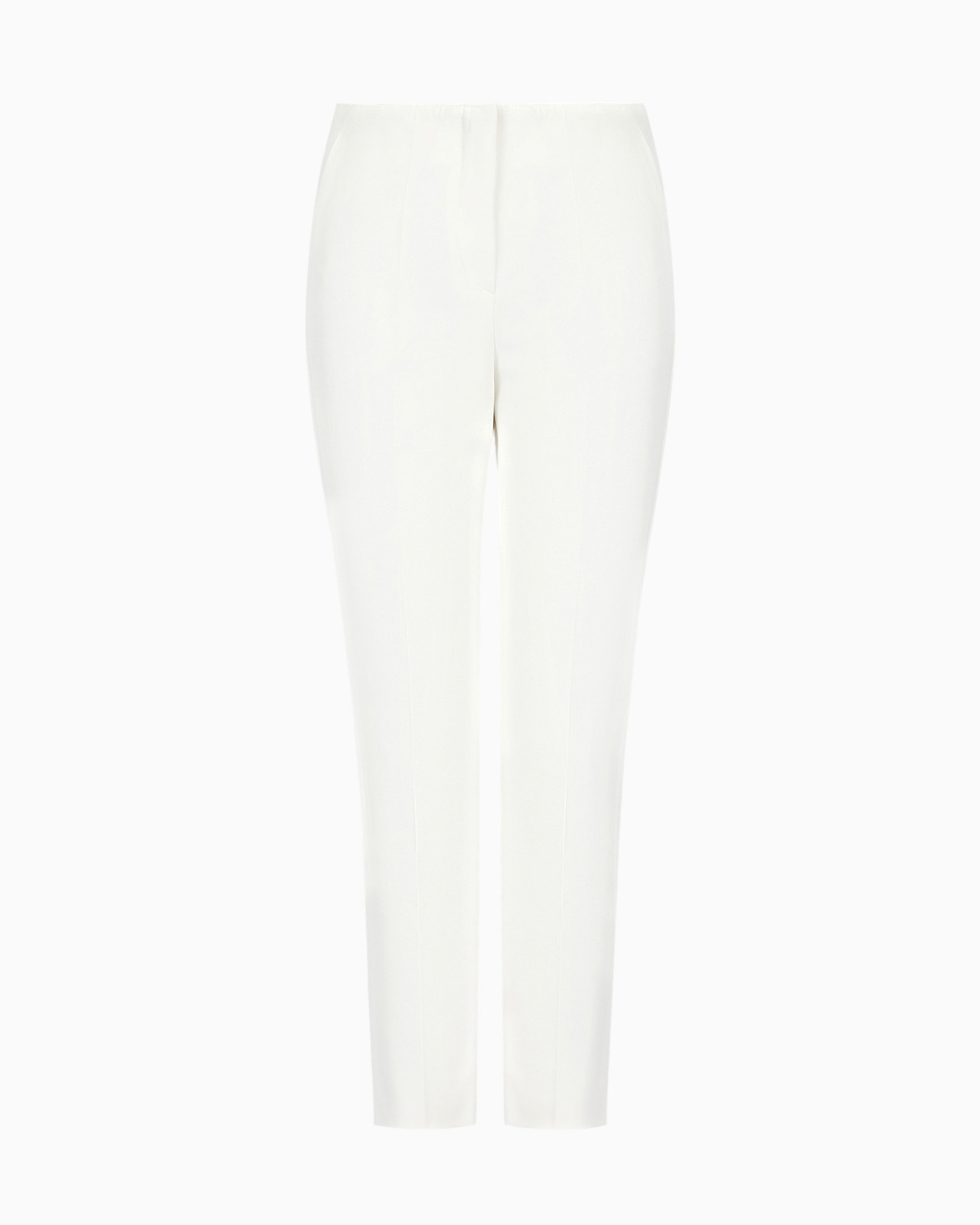 7/8 trousers in stretch gabardine that add a casual, practical allure, but are still stylish. This item transforms everyday looks through its laid-back irony. The side pockets and closure with a zip and hook complete the item. The piece belongs to the Essentials selection, the Emporio Armani capsule collection that makes a statement of enduring style: both elegant and practical, it works for numerous combinations on a wide array of occasions. The colour palette includes the brand’s characteristic neutral shades, combined with a minimalist design to create a series of key pieces for the female wardrobe. Product Code: 0NP42T0M0041101 Details Composition 54% Cotton 38% Polyamide 8% Elastane Stretch gabardine 7/8 style Zip and hook closure Side pockets Back welt pockets Unlined garment Fitting The model is 178 cm tall and is wearing size 40/S (Italian Size)