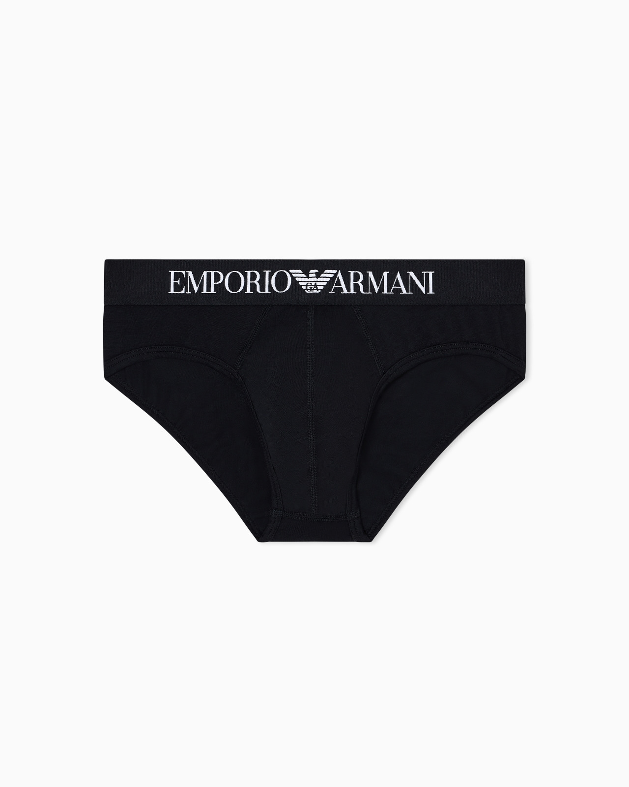 Briefs made of stretch cotton jersey with a logo elasticated waist. This item belongs to the Essentials clothing selection, the Emporio Armani capsule collection that is designed for a wardrobe that meets the demands of any season. These “essential”, versatile pieces are a must-have for the male wardrobe. Stretch jersey Elasticated waist Product Code: EM000230AF14133UC001