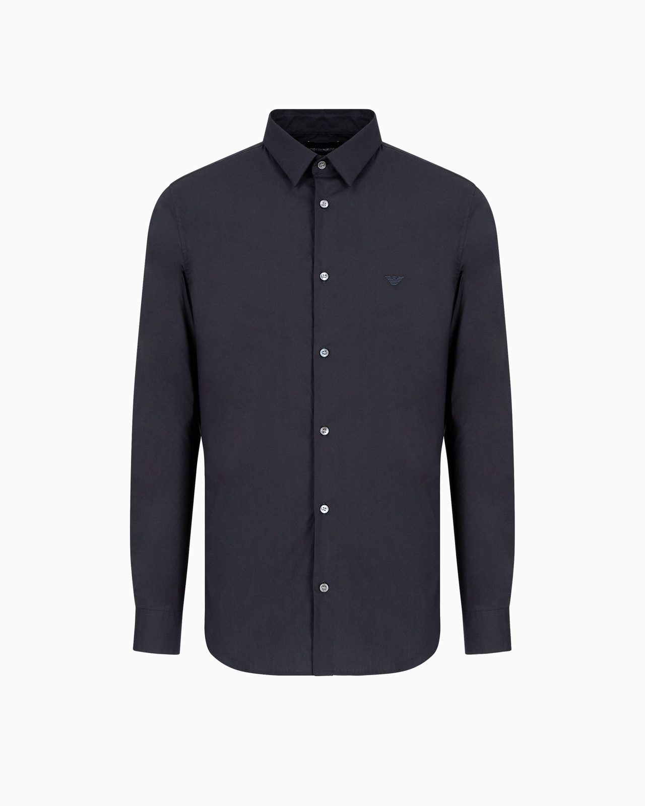 Shirt with classic collar and matching-tone embroidered iconic eagle on the front. The comfortable cotton and nylon blend fabric brings out the clean lines of this shirt, making it one of the summer season’s must-haves. This item belongs to the Essentials clothing selection, the Emporio Armani capsule collection that is an evergreen statement of style: an ongoing collection with clean, well-designed shapes for a wardrobe that meets the demands of any season. These “essential”, versatile pieces are a must-have for the male wardrobe. Product Code: 8N1C091NI9Z10934 Details Composition 76% Cotton 21% Polyamide 3% Elastane Stretch fabric Classic collar Front buttoning Long sleeves Matching eagle embroidery on the chest Back yoke Double darts on the back Fitting The model is 188 cm tall and is wearing size 40