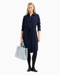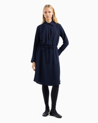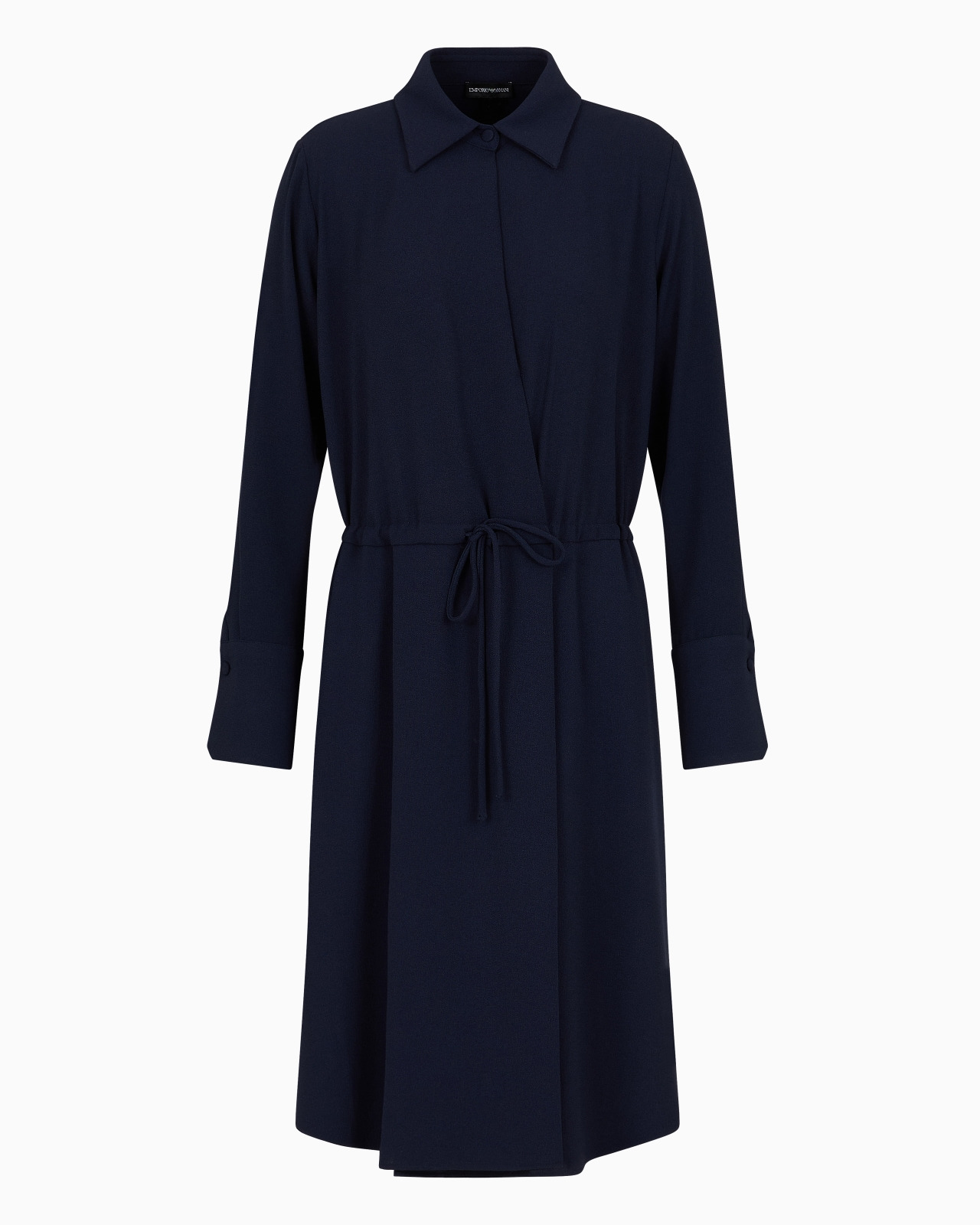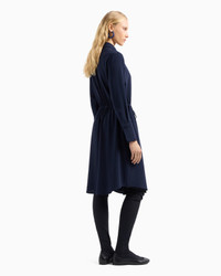 Dress with drawstring waist and classic collar that becomes a V-neck when the button is left undone. Made of stretch sable, a soft, sensual fabric that creates a piece designed to be worn day&night. A fluid style that sways with every step, adding movement to the entire piece and conveying the notion of comfortable elegance. Product Code: 6D2A652NA7Z10917 Details Composition 95% Polyester 5% Elastane Sable fabric Classic collar Covered button under the collar Long sleeves Wide button cuffs Drawstring waist with back elastic Side pockets Unlined bodice Lined skirt Fitting The model is 178 cm tall and is wearing size 40/S (Italian Size)