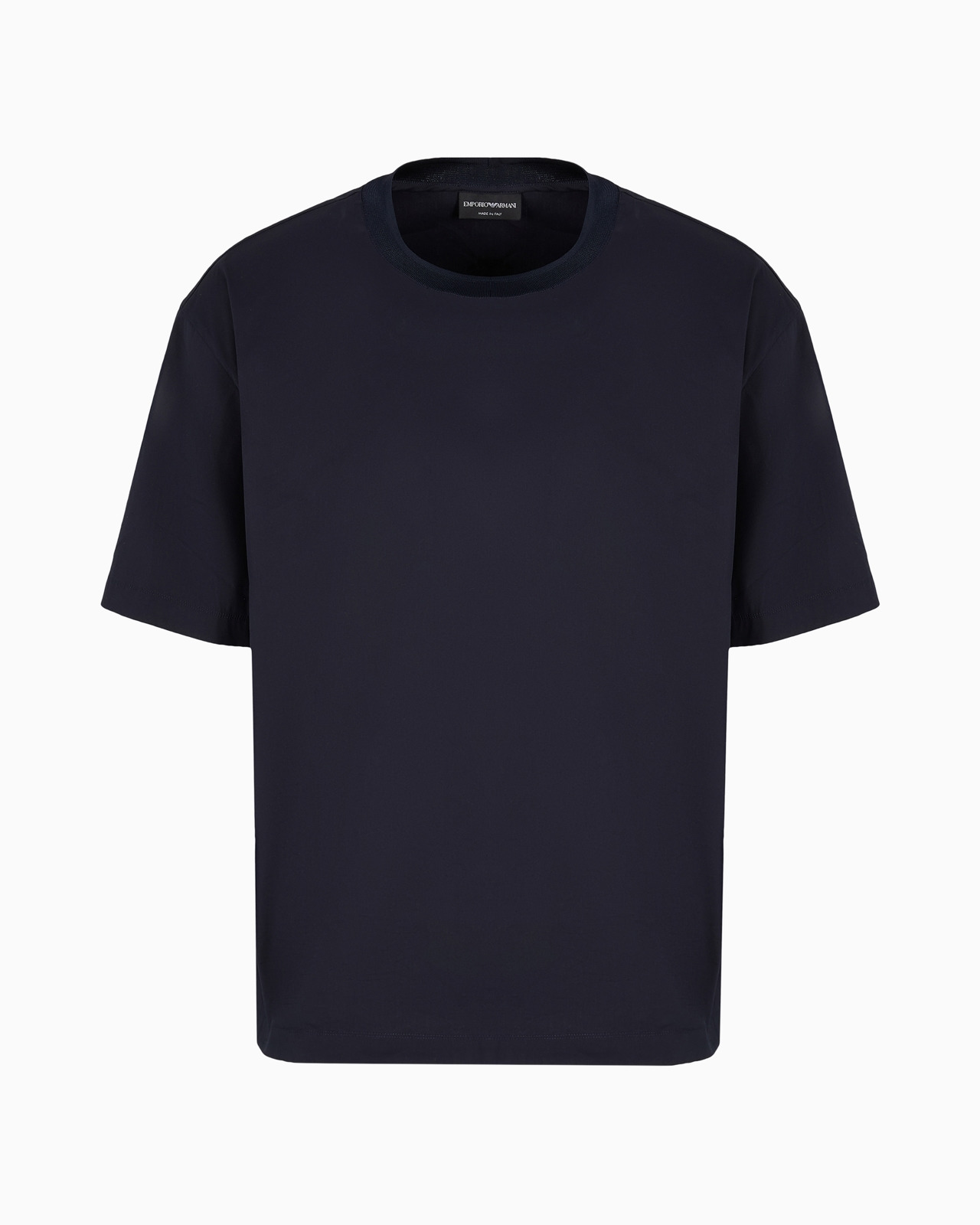 Crew-neck T-shirt made from a cotton-satin fabric typically used in shirt making. The comfortable, fresh texture makes the piece particularly suitable for layering. Product Code: EM000409TE103971UB109 Details Composition 69% Cotton 27% Polyamide 4% Elastane Stretch satin Knit crew neck Short sleeves Fitting The model is 188 cm tall and is wearing size 40