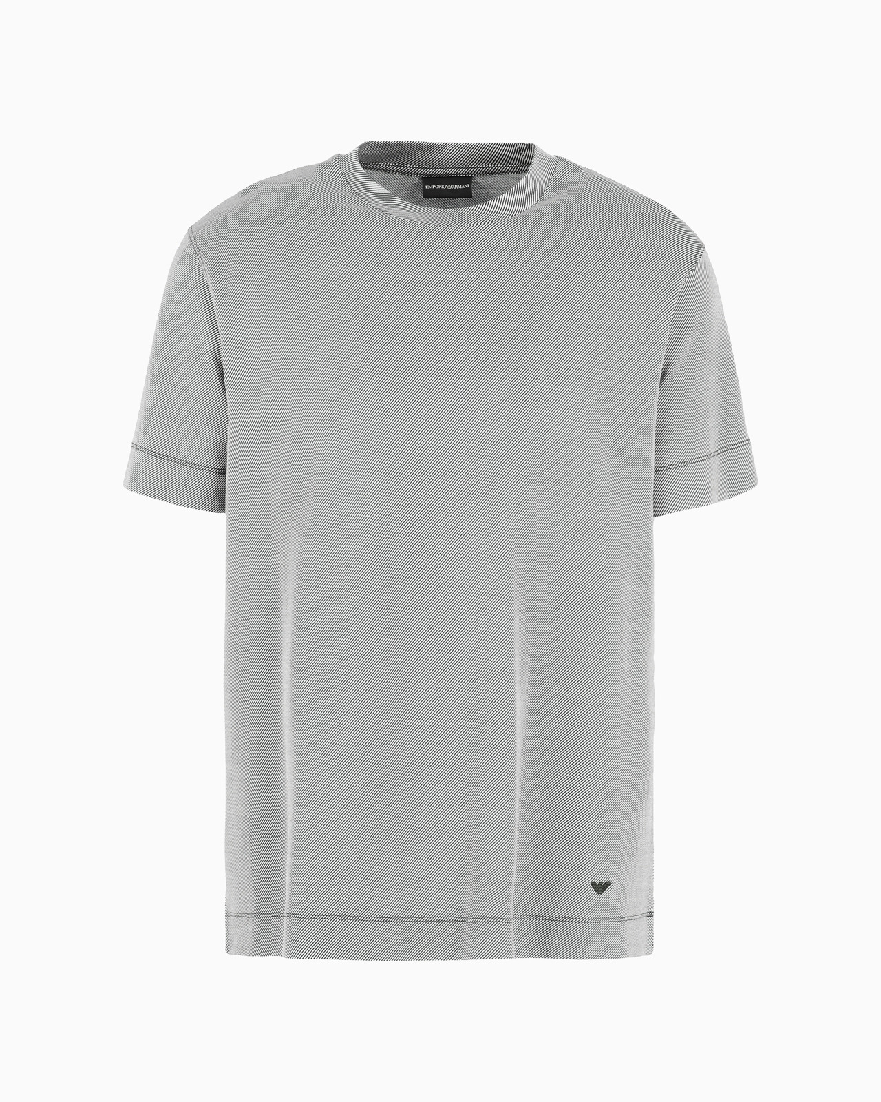 Regular-fit T-shirt made from a cotton and Lyocell-blend jersey. Lyocell is a semi-synthetic fibre that has an exceptionally low impact on the environment. It is derived from eucalyptus leaves and is renowned for being moisture-wicking, durable, breathable and wrinkle-proof. At first glance, the item appears solid colour, but a closure look reveals that the diagonal motif is two tone. Product Code: 6D1TM51JCUZ101P1 Details Composition 70% Lyocell 30% Cotton Regular fit Jersey Crew neck Short sleeves Micro-eagle embroidered at the left hem Fitting Regular fit The model is 188 cm tall and is wearing size 48/M (Italian Size)