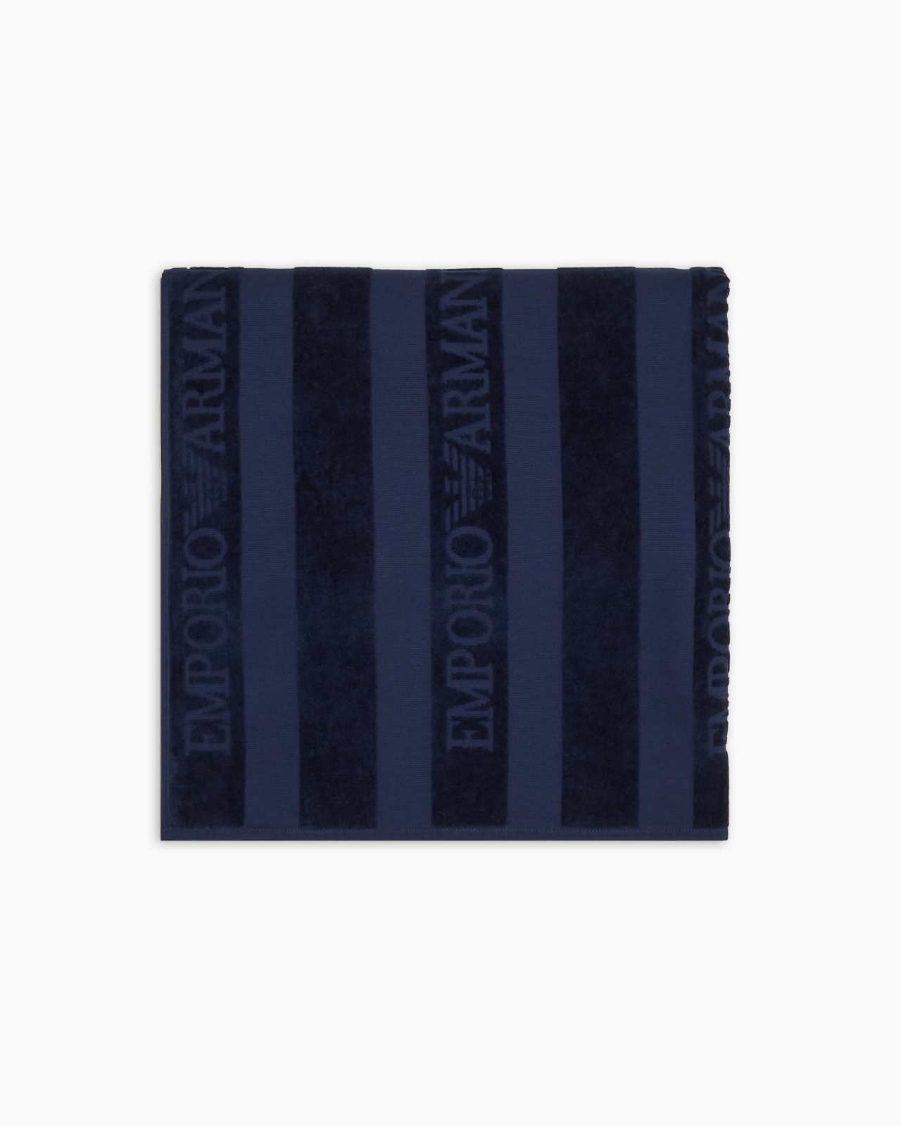 STRIPED TERRY BEACH TOWEL WITH LOGO