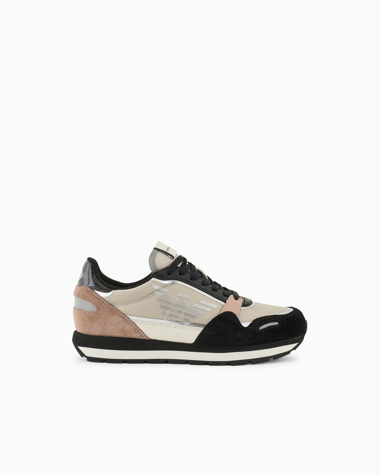 The standard shape of the running shoe is given a modern edge, creating a dynamic, lightweight, urban look. The casual allure of these sneakers is enhanced by an oversized side eagle, as well as an upper made from several different materials. Product Code: X3X058XN0421Q513 Details Composition 100% Polyamide Techno fabric Suede effect Brand logo Multicolor Pattern Laces Round toeline Fully lined Rubber sole