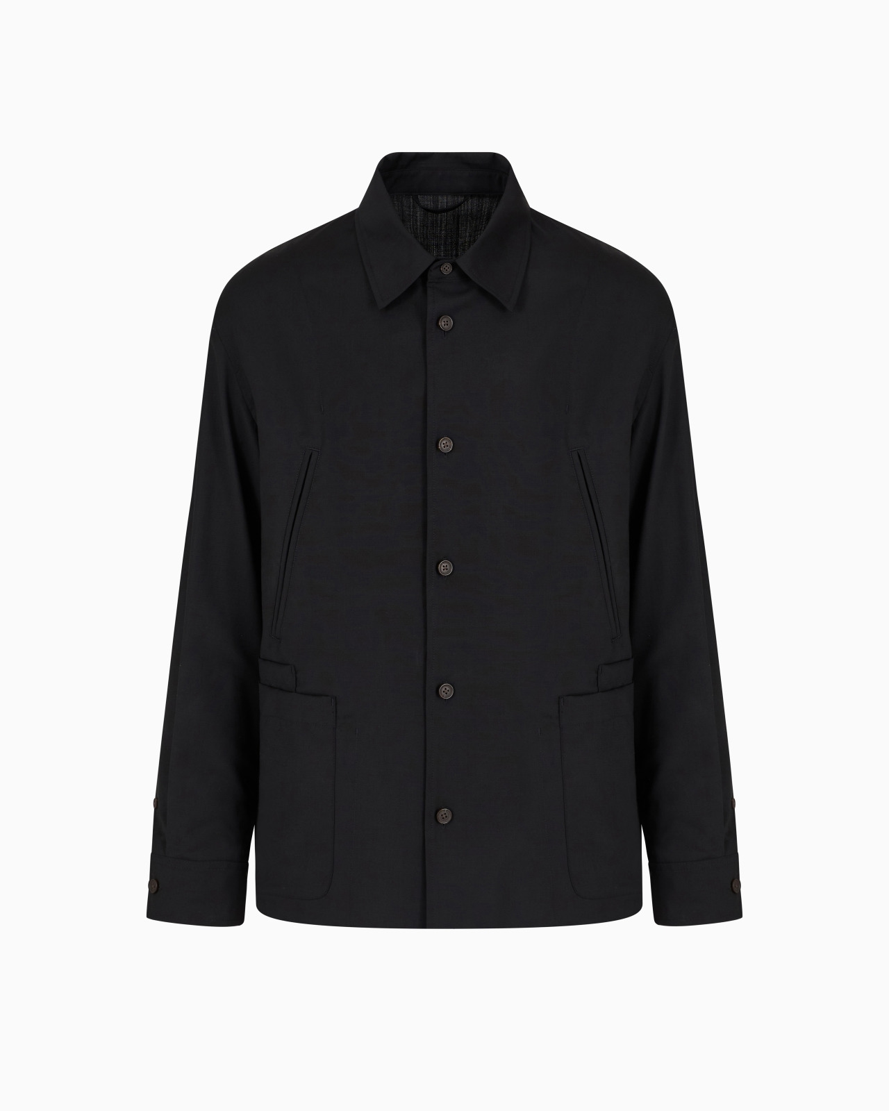 Classic collar shirt jacket made of a pure virgin light wool poplin, a super lightweight formal fabric that enhances the essential lines of this garment with its exceptional lightness. The shirt-style construction lends a breezier attitude compared to real outerwear. Light wool Classic collar Front buttoning Long sleeves Angled cuffs Double-welt pockets on the chest Side patch pockets Back yoke Zipped inner pocket Product Code: EM001480AF13821UC001